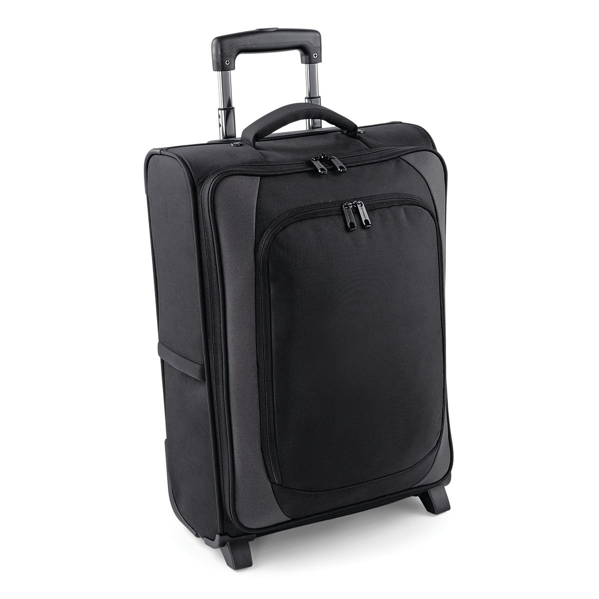 100% poliestere 1680d. Trolley dotato di manico da traino regolabile multi-posizione, compatibile con portatile fino a 15,6', tasca laterale con zip, chiusura a lucchetto del compartimento principale. Dimensioni: 38 x 55 x 20 cm, capacita': 29 litri, area di stampa: 22 x 26 cm.