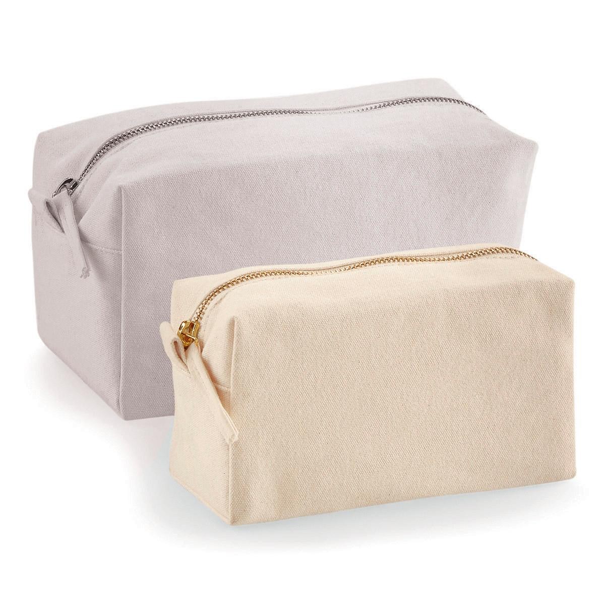 100% Cotone Canvas pettinato - 407 g/m², disponibile in due taglie - piccolo e grande, chiusura con zip, multiuso, dimensioni: 17 x 9 x 7 cm, area di stampa: S - 15 x 9 cm, capacità: 1,5 litri.