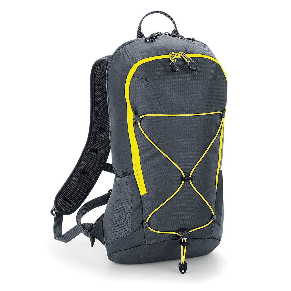 100% 210D e 300D poliestere. Zaino tecnico in tessuto resistente all'acqua, tasca interna con zip, tasche laterali elasticizzate in rete. Dimensioni: 27x48x16 cm, capacità: 10 litri, area stampabile: 18x23 cm.