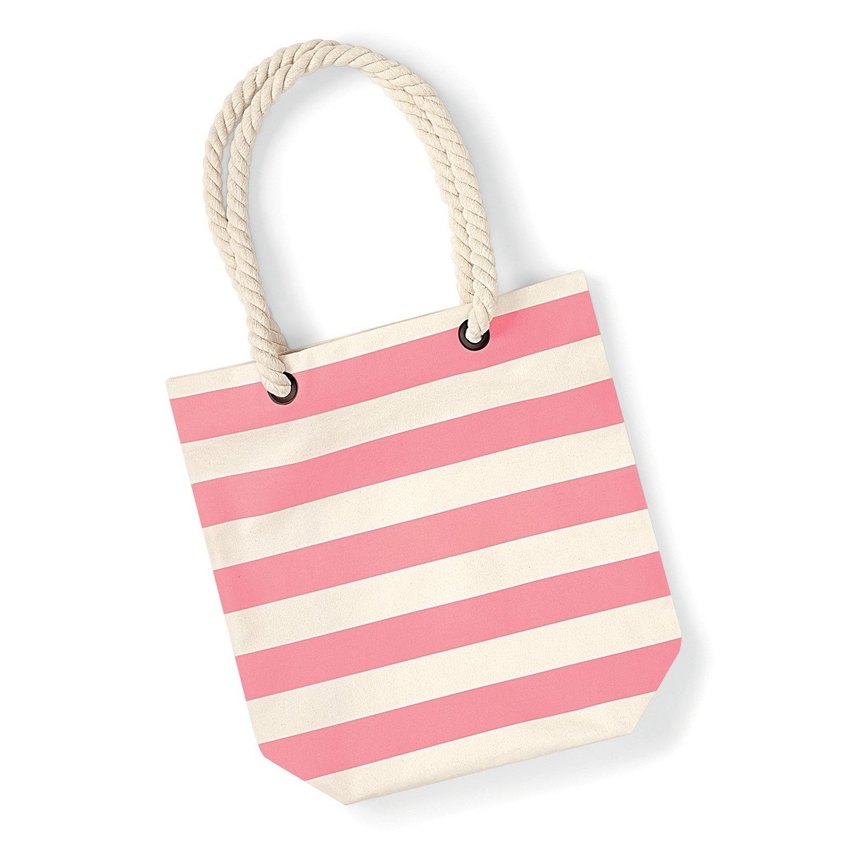 100% cotone Canvas. Shopper con motivo a strisce, manici in fettuccia di cotone, può essere portata a mano o sulla spalla. Lunghezza manici: 67 cm. Dimensioni: 24x40x13 cm, capacità: 12 litri, area stampabile: 33x33 cm.