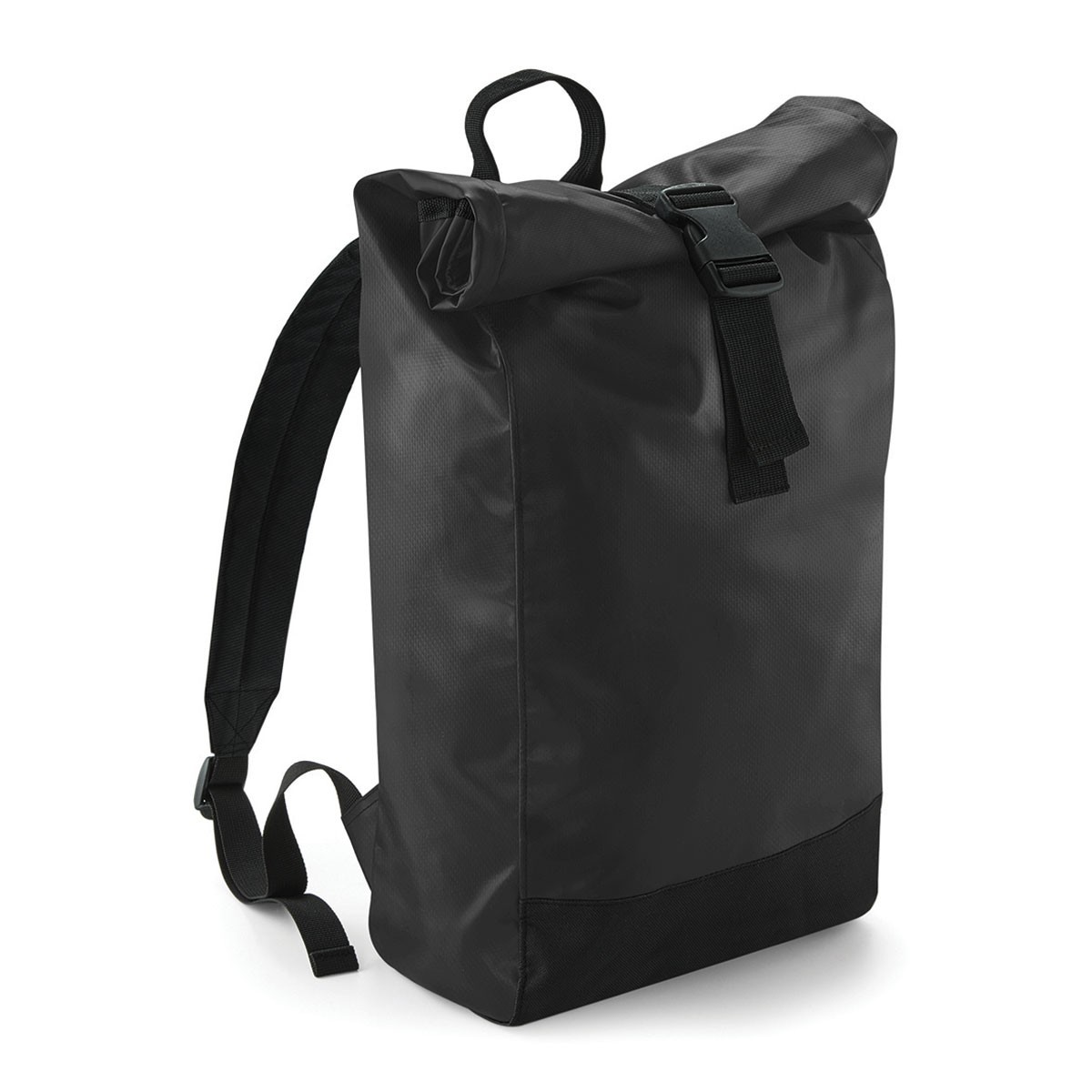 100% PVC Tarpaulina. Zaino in tessuto impermeabile con chiusura avvolgibile, tasca nascosta con cerniera, spalline imbottite e regolabili. Dimensioni: 26 x 43 x 13 cm, capacita': 15 litri, area di stampa: 20 X 14 cm.