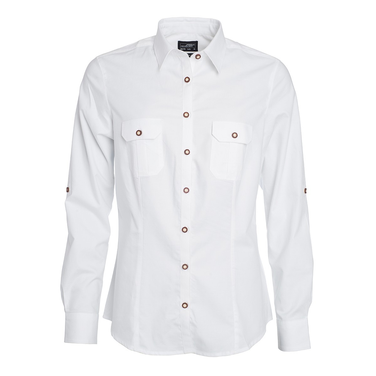 ?Twill di cotone, facile da stirare con finitura easy-care_x000D_, Manica rimboccabile con linguetta e bottone_x000D_, Doppio taschino sul petto_x000D_, Bottoni da costume tradizionale a imitazione del corno_x000D_, taglio femminile_x000D_. JN676: vestibilità classica