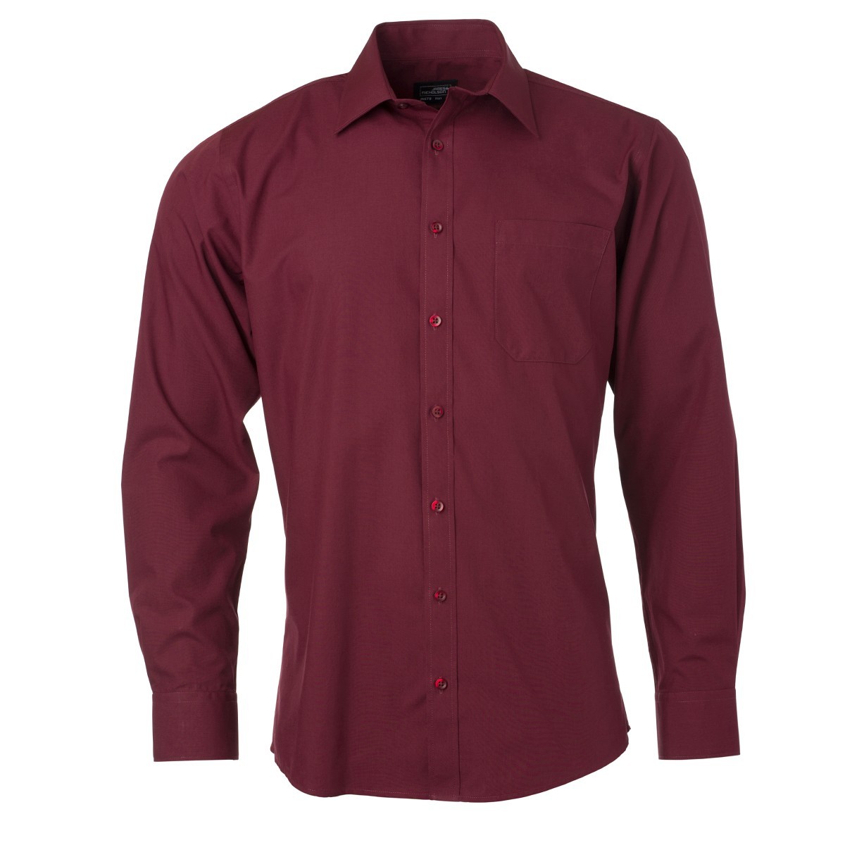 65% poliestere, 35% cotone. Camicia poplin easy care con orlo arrotondato, bottoni, taglio classico leggermente avvitato e taschino lato cuore.