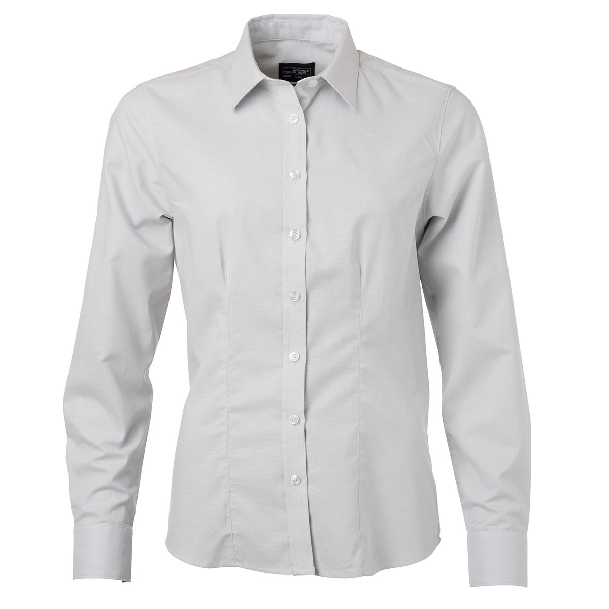 70% cotone, 30% poliestere. Camicia qualita' Oxford, easy care, orlo arrotondato, Taglio femminile leggermente sfiancato