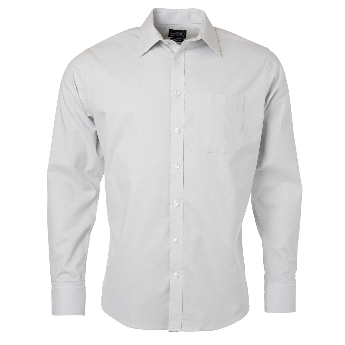 70% cotone, 30% poliestere. Camicia qualita' Oxford, easy care, orlo arrotondato, taglio classico, leggermente avvitato. Taschino lato cuore e pieghe sul retro.