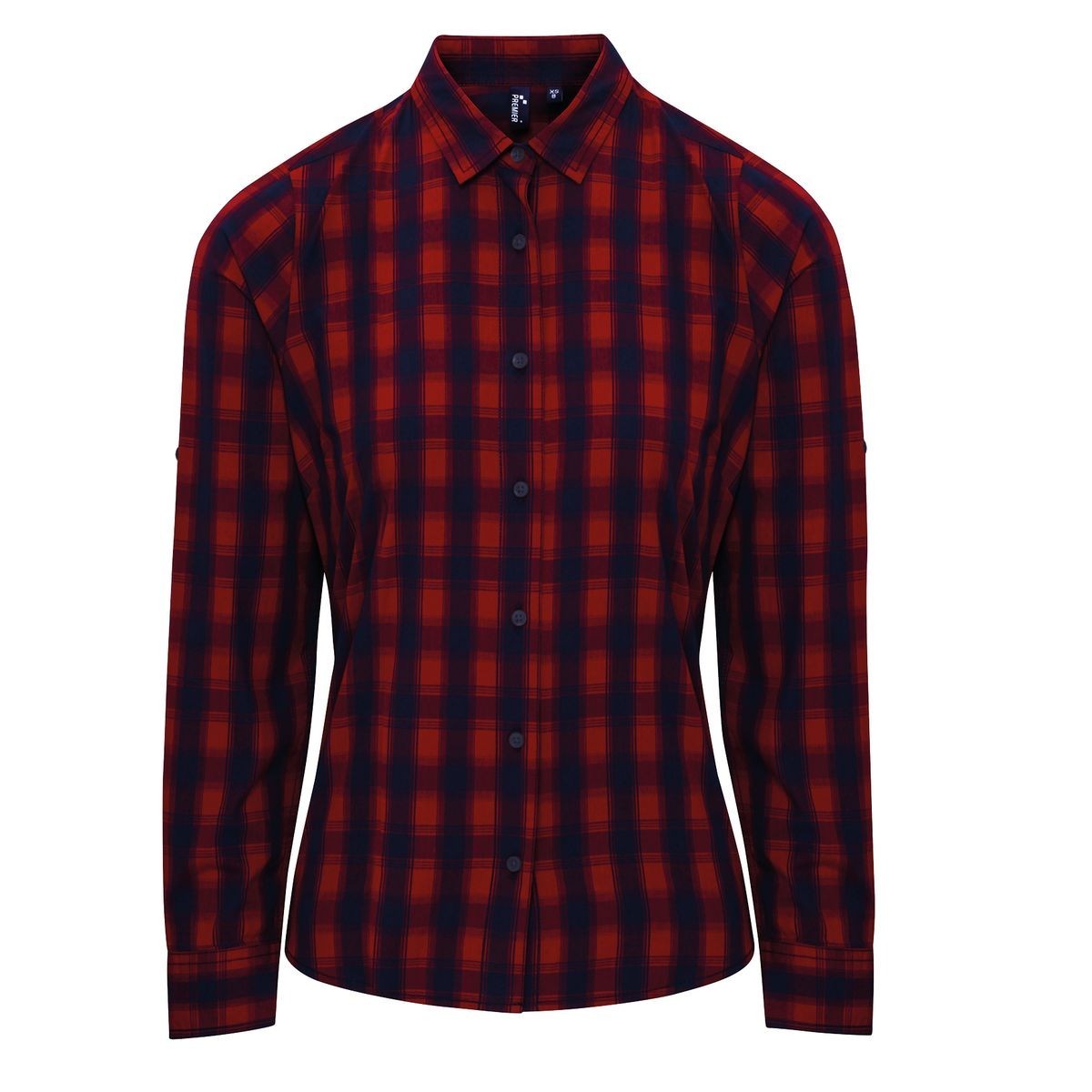 100% cotone. Camicia donna a manica lunga con disegno a quadri in contrasto multi-colore. Polsino con bottone semplice e pannello protettivo della manica, creato per rimboccarla e chiuderla con una linguetta abbottonabile sull'avambraccio. Leggermente sfiancata ai lati.