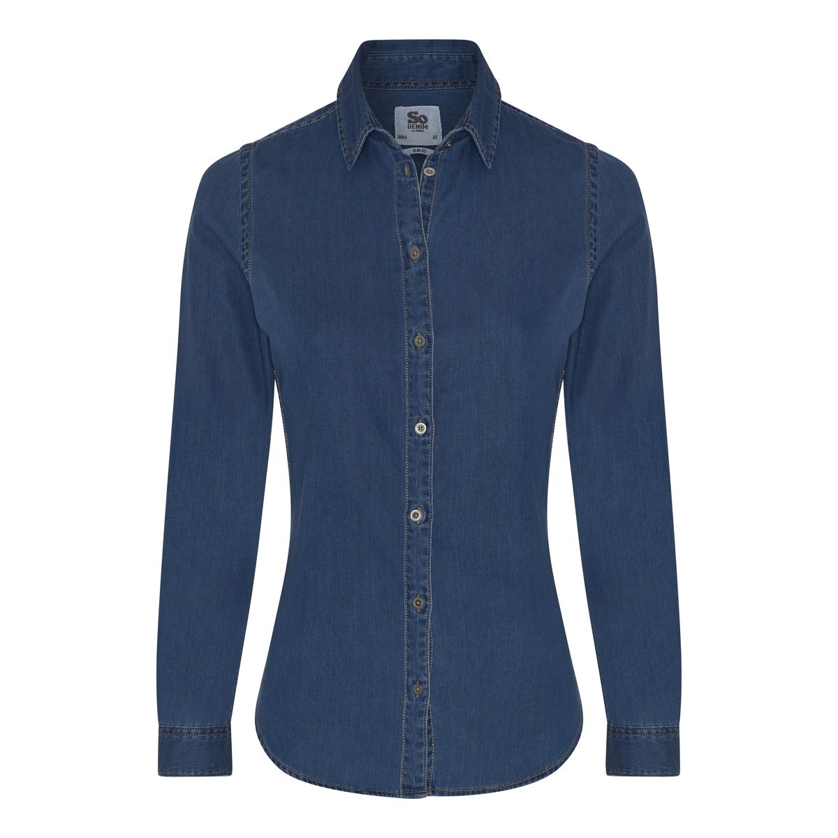 100% cotone, camicia donna manica lunga senza tasche, leggermente sfiancata ai lati. Cuciture laterali in contrasto, cuc