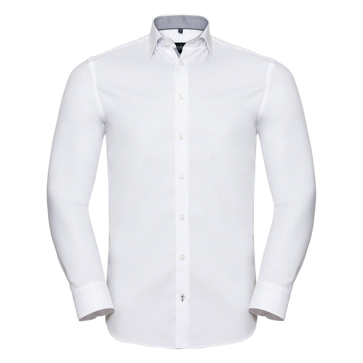84% cotone, 16% poliestere. Camicia da uomo a maniche lunghe con bordi a contrasto, pinces sul retro per una miglior vestibilità, polsini stondati regolabili a 2 bottoni con occhiello per gemelli. (col. 30: 125 g/m)
