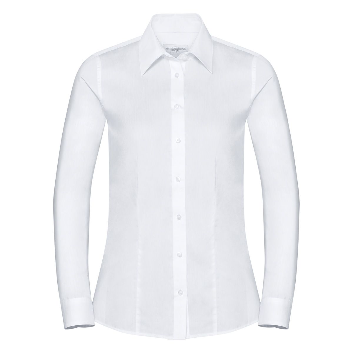 70% cotone , 30% Coolmax®Poliestere. Camicia a maniche lunghe da donna, con colletto moderno dal taglio pulito, raffinato look chambray in Light Blue, pinces sul davanti e pannello sul retro per una miglior vestibilità, orlo curvo. (Col. 30: 110 g/m²).