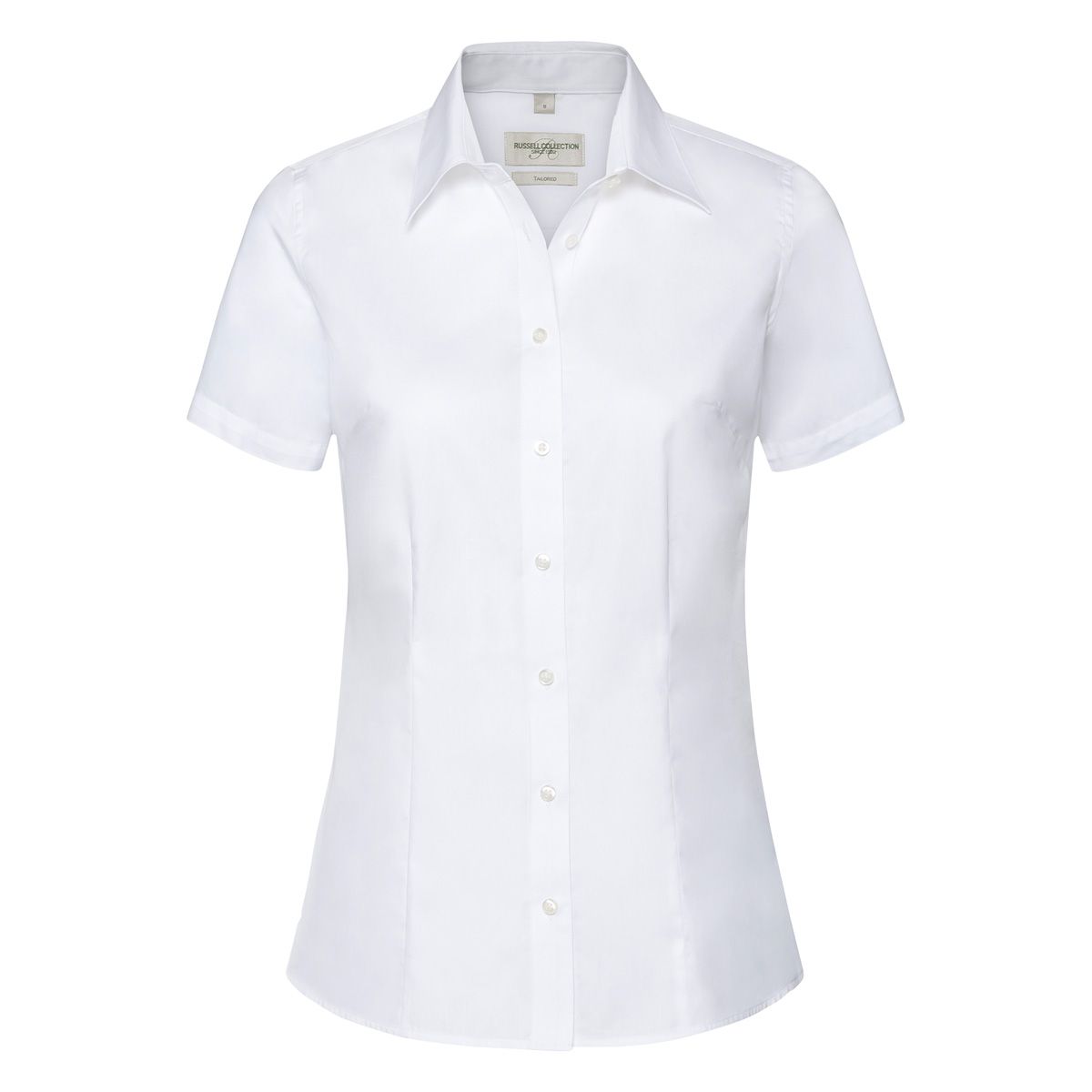 70% cotone, 30% Coolmax poliestere. Camicia da donna a maniche corte con colletto dal taglio moderno e pulito, raffinato look chambray in Light Blue, pinces sul davanti e pannello posteriore per una miglior vestibilità, orlo arrotondato. (Col. 30: 110 g/m²).