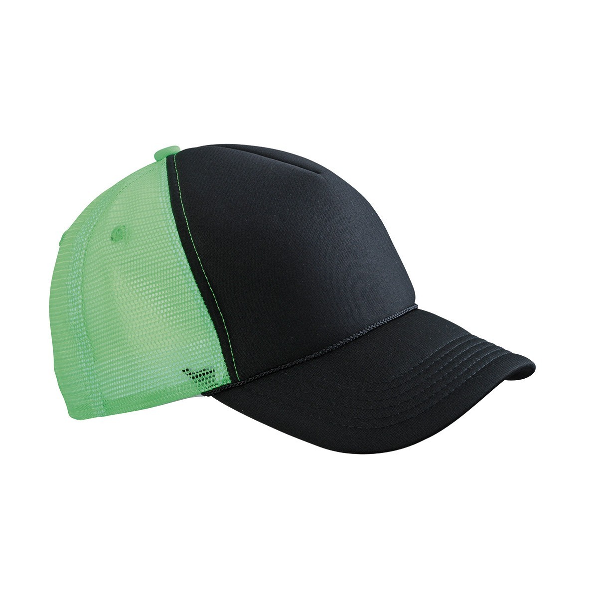 Cap a 5 pannelli con cordino retrò sulla visiera 6 cuciture sulla visiera, Fascetta tergisudore in cotone, Regolazione taglia con chiusura ''click & snap'' Tessuto esterno: 100% poliestere, policromo.