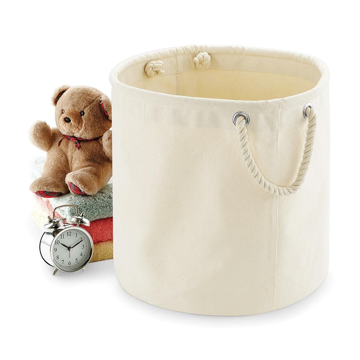 100% cotone canvas. Struttura solida e resistente in canvas, manici per il trasporto in corda pesante, multifunzione. Dimensioni: 40 x 40 cm, capacità: 50 litri, diametro: 40 cm. Area di stampa: 120 x 28 cm. Lunghezza del manico: 50 cm. 610 g/m².100%
