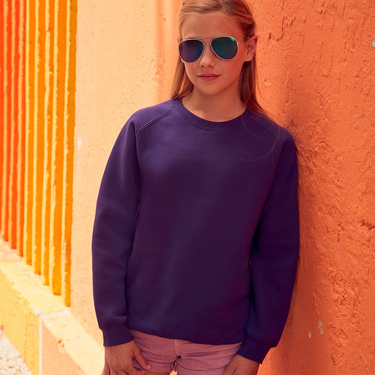 70% cotone, 30% poliestere. Felpa con maniche raglan, collo in costina cotone/lycra, fettuccia interna tono su tono, felpata internamente, struttura con cuciture laterali. (94: 260 g/m²).