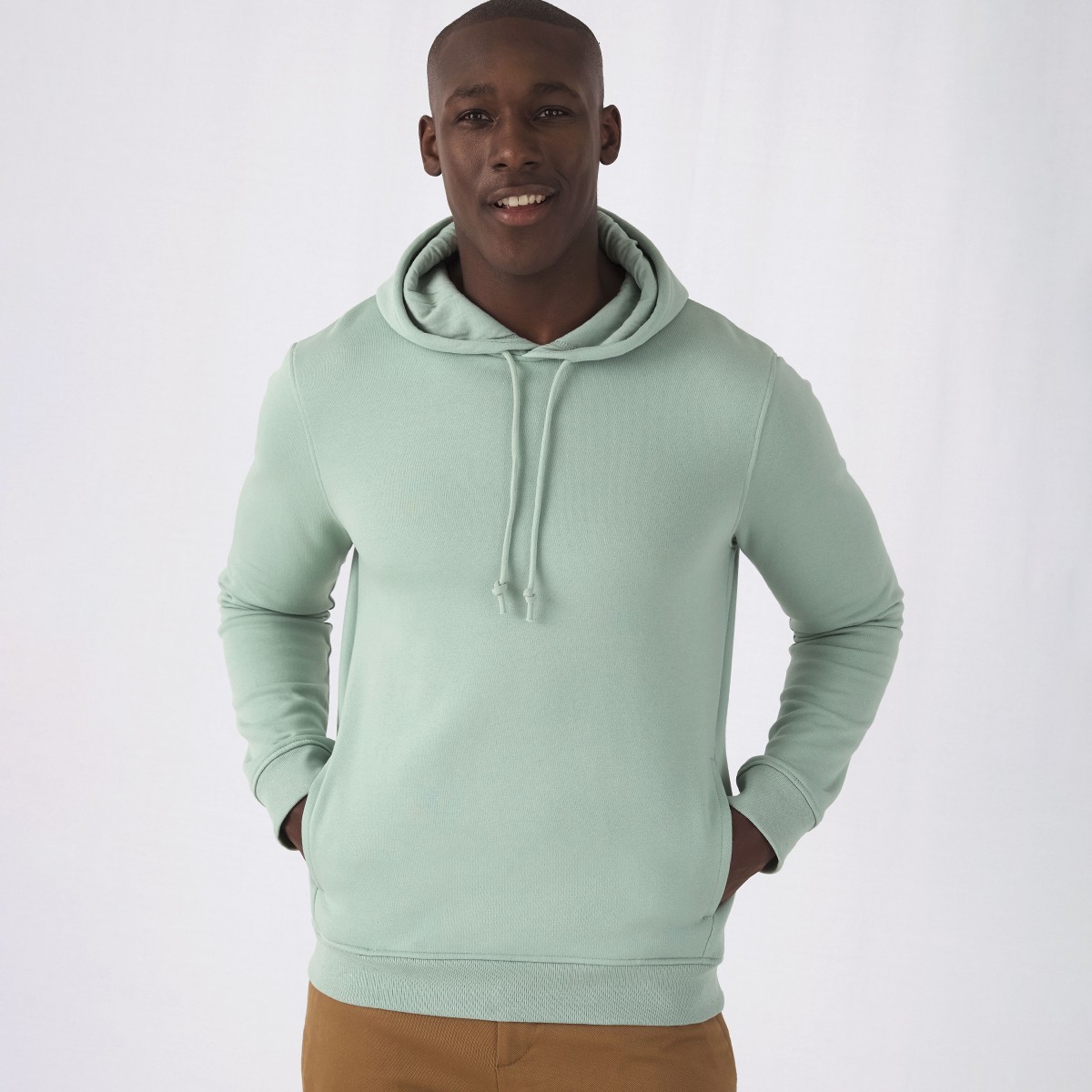80% Cotone ring-spun organico OCS, pettinato, preristretto, 20% Poliestere riciclato RCS. Felpa organica con cappuccio foderato in jersey, con tasche inserite nelle cuciture laterali per una maggiore superficie di stampa, nastro parasudore a spina di pesce di alta qualità, mezzaluna in single Jersey sulla schiena per una facile personalizzazione. Felpata internamente, esterno 100% cotone molto liscio e morbido. Nessuna etichetta B&C.