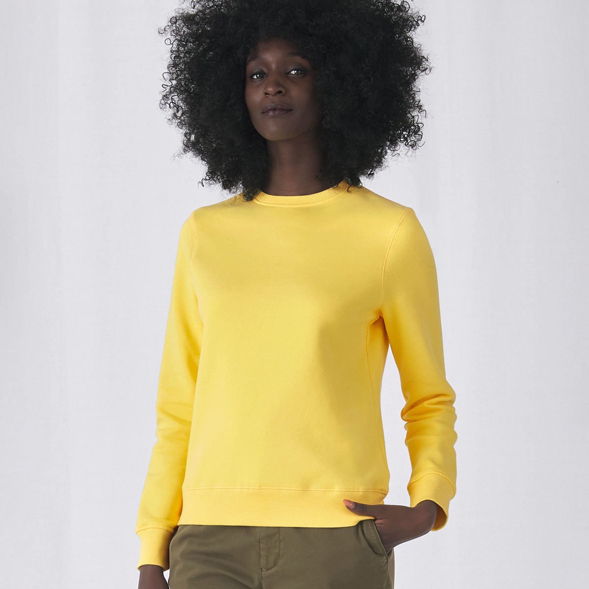 80% Cotone ring-spun pettinato, preristretto, 20% Poliestere. Felpa girocollo di alta qualità con maniche set-in, struttura con cuciture laterali, nastro parasudore resistente e di qualità, mezzaluna in single Jersey sulla schiena per un look premium e una maggiore durata nel tempo. Tessuto PST, felpata internamente, esterno 100% cotone pettinato.