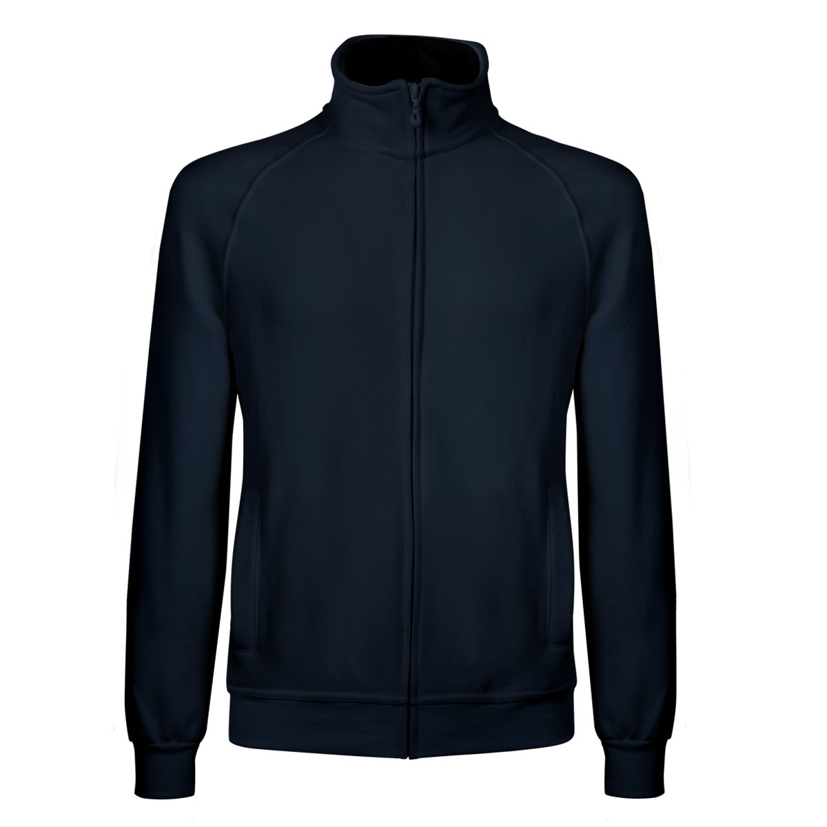 70% cotone pettinato, 30% poliestere. Felpa con maniche raglan, felpata internamente, zip intera, tasca a marsupio, orlo inferiore e polsini in costina, struttura con busto tubolare. Etichetta strappabile.