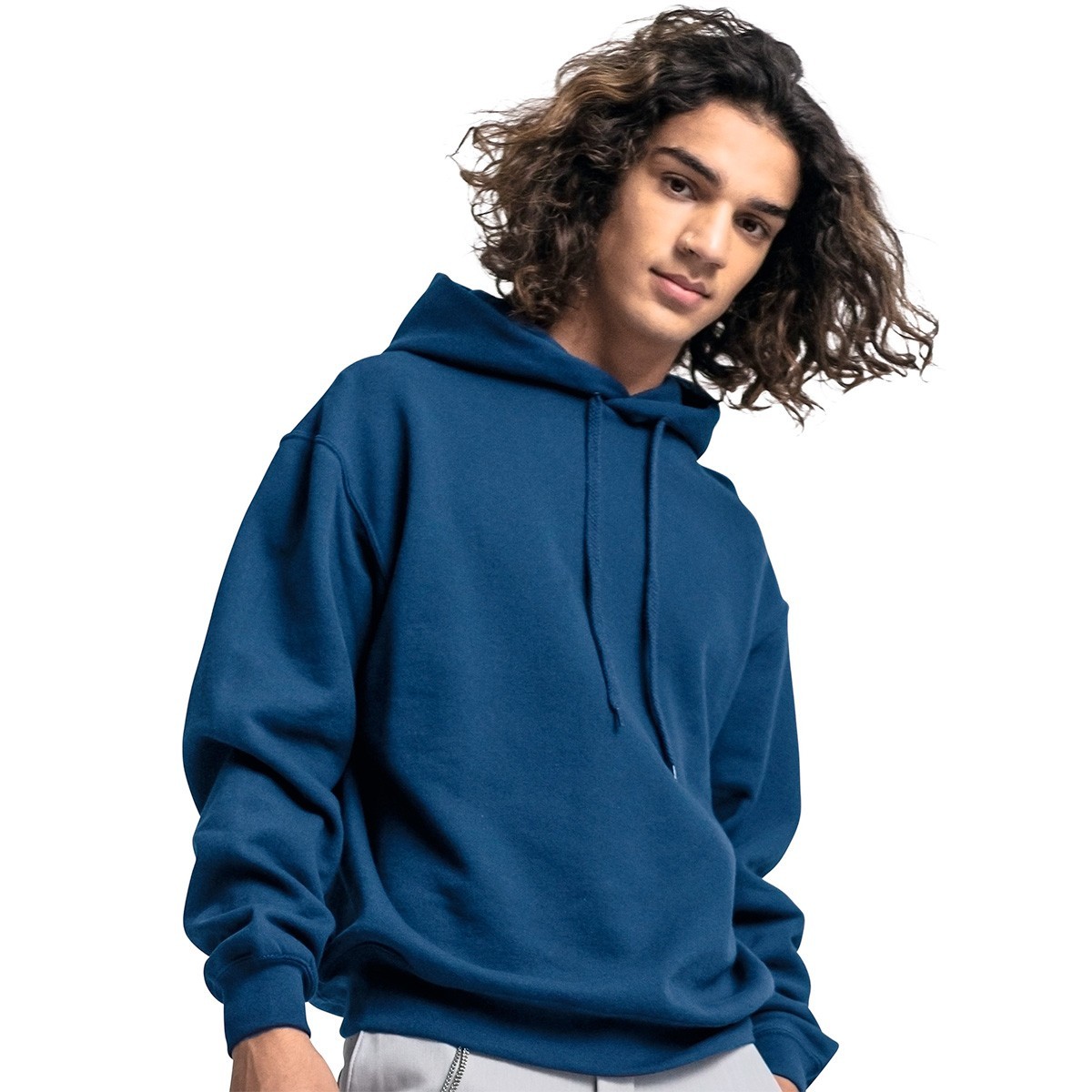 80% cotone 20% poliestere. Felpa con cappuccio foderato in tessuto, cordino tono su tono, orlo e polsini in costina cotone/LYCRA®, senza tasca a marsupio per una superficie di stampa più ampia sul corpo, doppie cuciture sulle maniche.