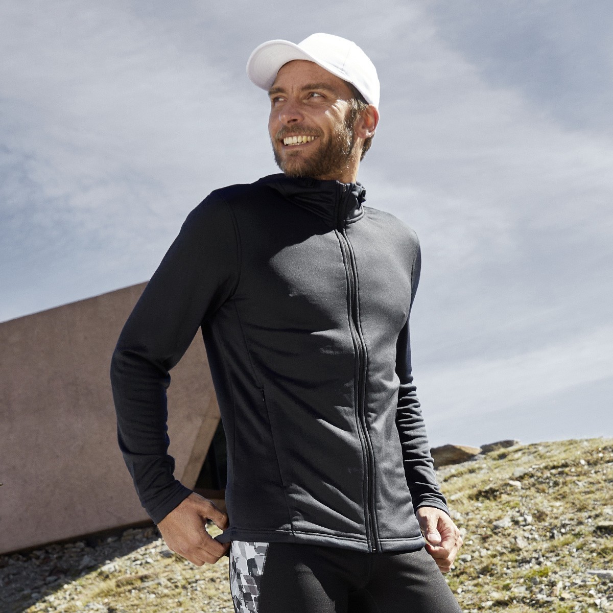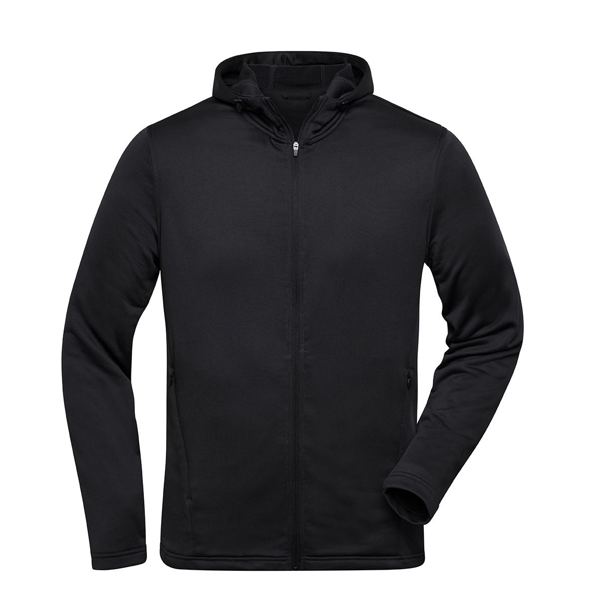 100% poliestere (riciclato). Felpa con cappuccio regolabile, tessuto french terry easy-care, due tasche laterali con zip, due tasche interne, zip YKK.