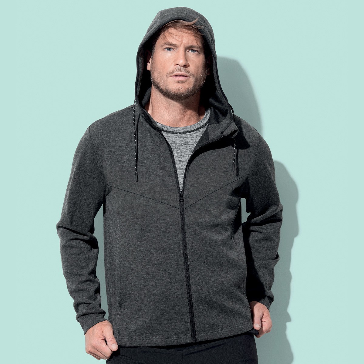BLO: 94% poliestere (24% riciclato), 6% elastan, ANH: 81% poliestere (28% riciclato), 13 % viscosa, 6% elastan. Giacca con cappuccio da uomo, tessuto funzionale eco-compatibile, prodotto con 8 bottiglie di plastica riciclate per giacca, cappuccio tipo ''sub'' con bordatura elastica e cordoncino bicolore, occhielli in metallo (senza nichel), 2 tasche laterali con cerniere nascoste, cerniera con chiusure lampo in metallo (senza nichel), orlo nello stesso materiale, nastro di rinforzo, cuciture laterali, etichetta della taglia intessuta nel colletto, etichetta di manutenzione a strappo nella cucitura laterale, lavabile a 40°C.'