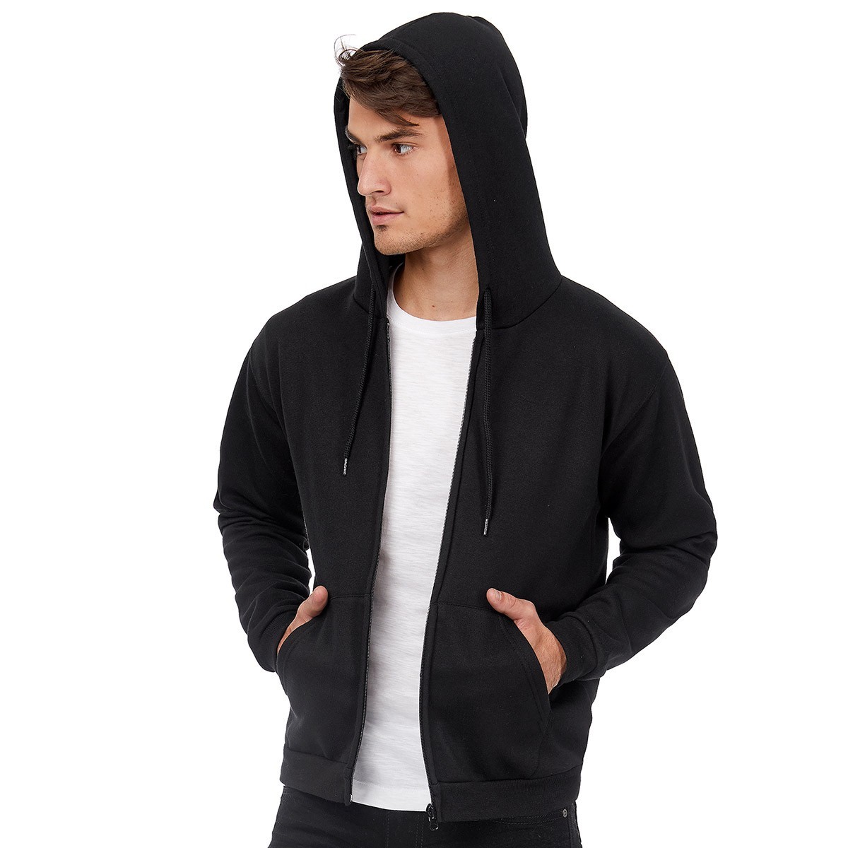 50% cotone, 50% poliestere. Felpa con maniche set-in, cerniera a doppio cursore coperta, stile Unisex. Polsini, collo e orlo inferiore in costina 1x1 in elastane, struttura con cuciture laterali, cuciture rinforzate su collo e maniche, felpata internamente, etichetta strappabile.