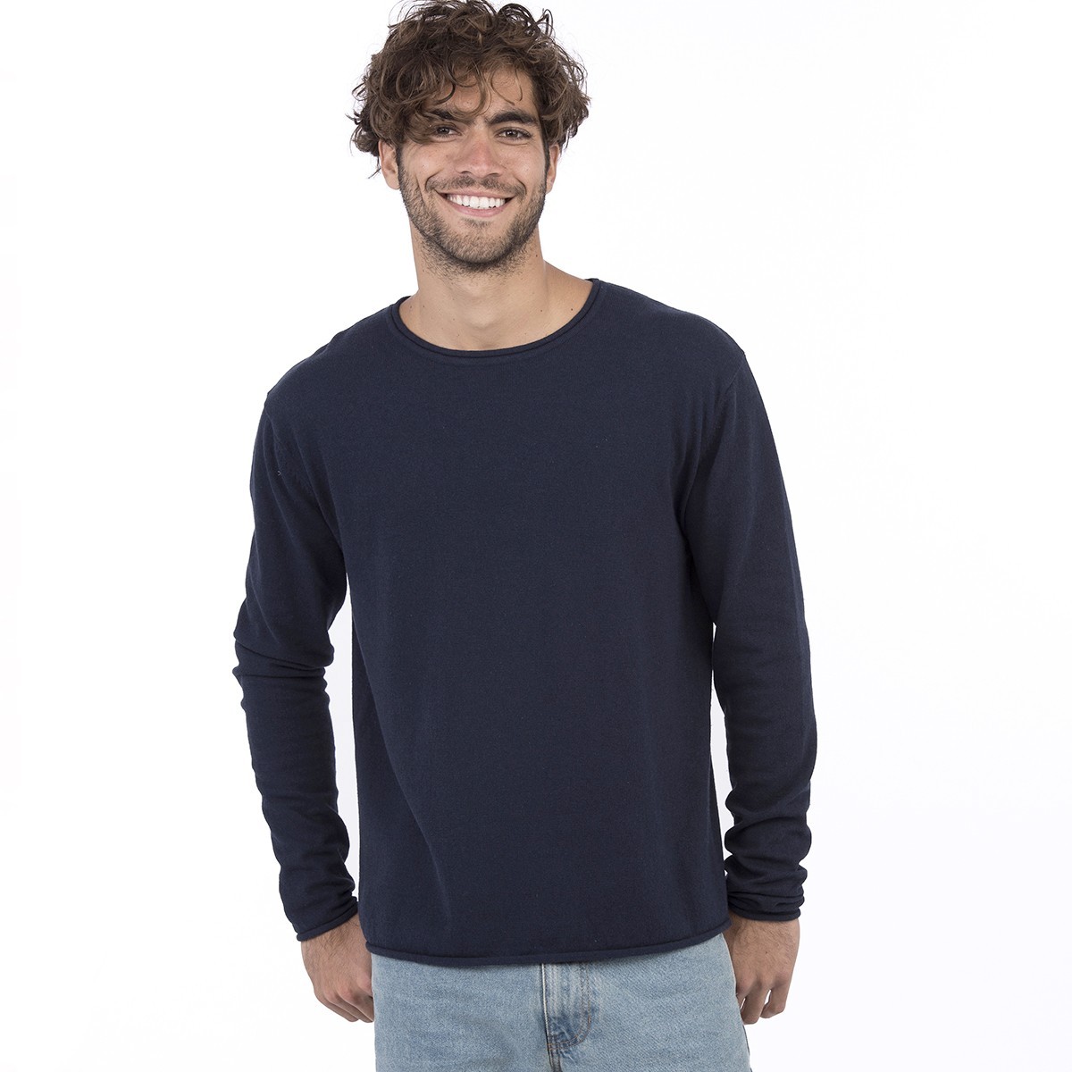 70% cotone rigenerato 30% poliestere. Felpa con maniche set-in, colletto, polsini e orlo inferiore arrotolati, sgarzata, struttura con cuciture laterali, etichetta strappabile.
