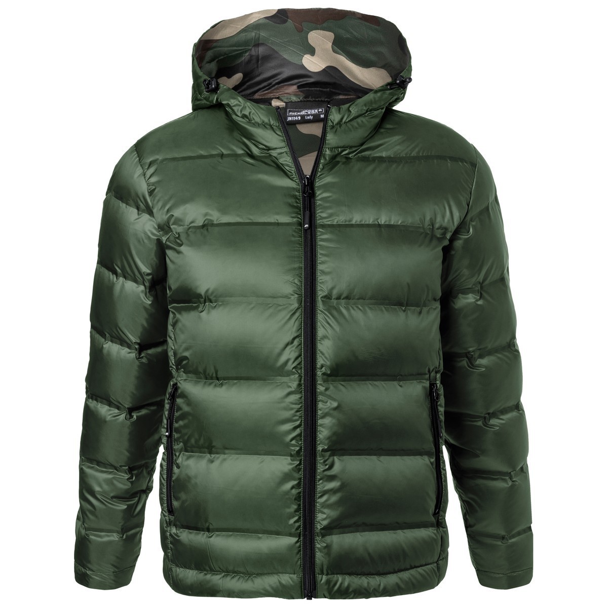 100% poliestere. Piumino morbido imbottito con piume, con cappuccio regolabile, tessuto antivento e idrorepellente, cern