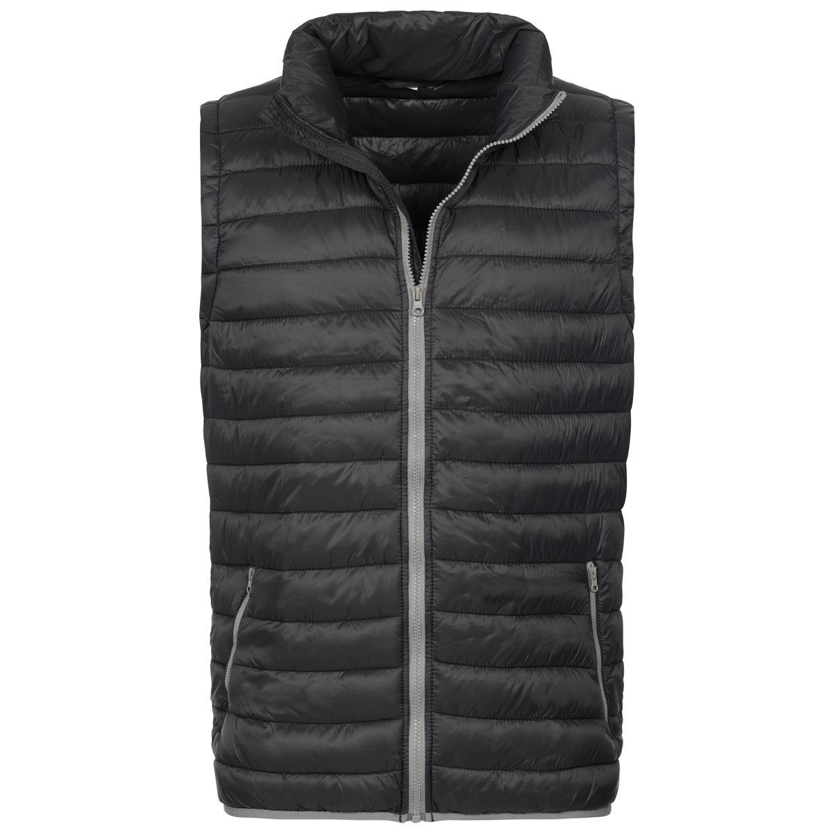 Tessuto esterno e fodera: 100% nylon, imbottitura: 100% poliestere. Gilet smanicato con zip di colore contrastante, colletto alto con cappuccio a scomparsa, struttura con cuciture laterali, 2 tasche frontali con zip.
