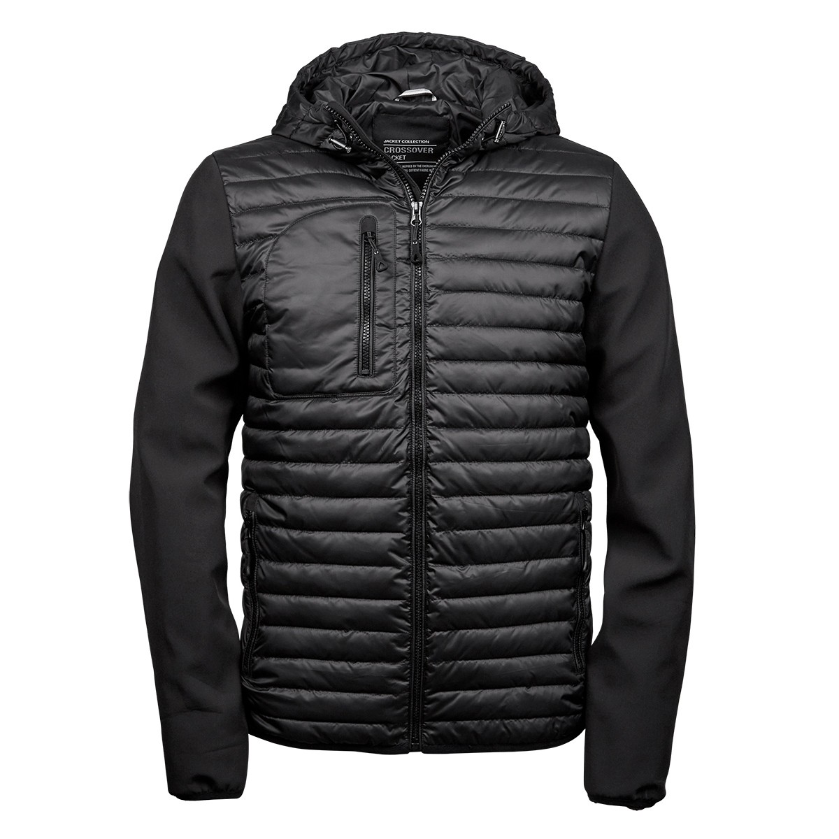 100% poliestere 300t. Giacca con maniche in softshell: 95% poliestere e 5% elastane, 2 ampie tasche frontali, una tasca interna, taschino al petto, cerniere, cappuccio regolabile, polsini elastici.