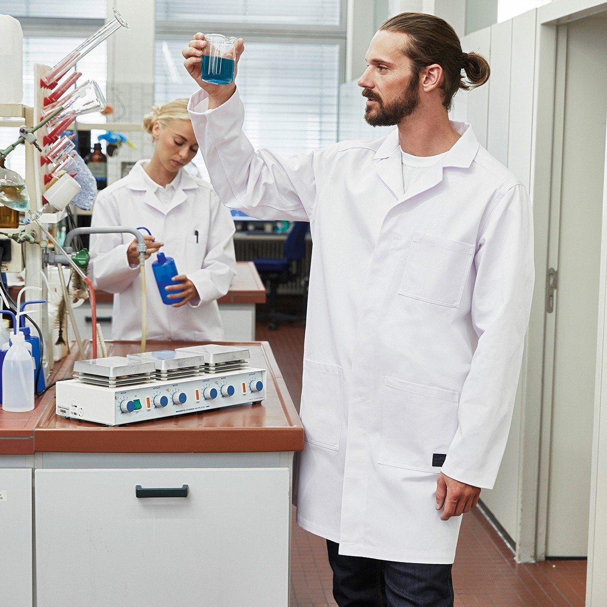 50% cotone 50% poliestere. Giubbotto da lavoro in tessuto misto robusto e resistente, triple cuciture, pattina bottoni interna, due tasche laterali, una tasca sul petto con porta-penne, lavabile a 60° C e ideale per asciugatura in asciugatrice. Per evitare che il prodotto si rovini, tutti i bottoni sono nascosti.