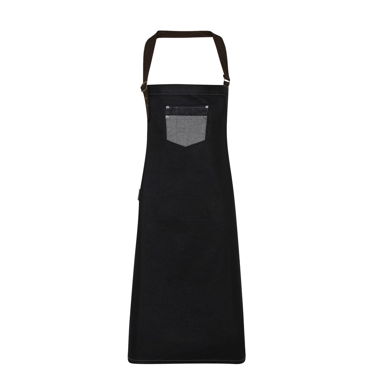 100% cotone. Grembiule con finitura in acrilico. Laccio in vita in eco-pelle lungo 1m e laccio al collo regolabile con fibbie metalliche. Cuciture e tessuto in jeans a contrasto, tasca di grandi dimensioni applicata e tasca di servizio. Misura 86 cm di altezza e 72 cm di larghezza.