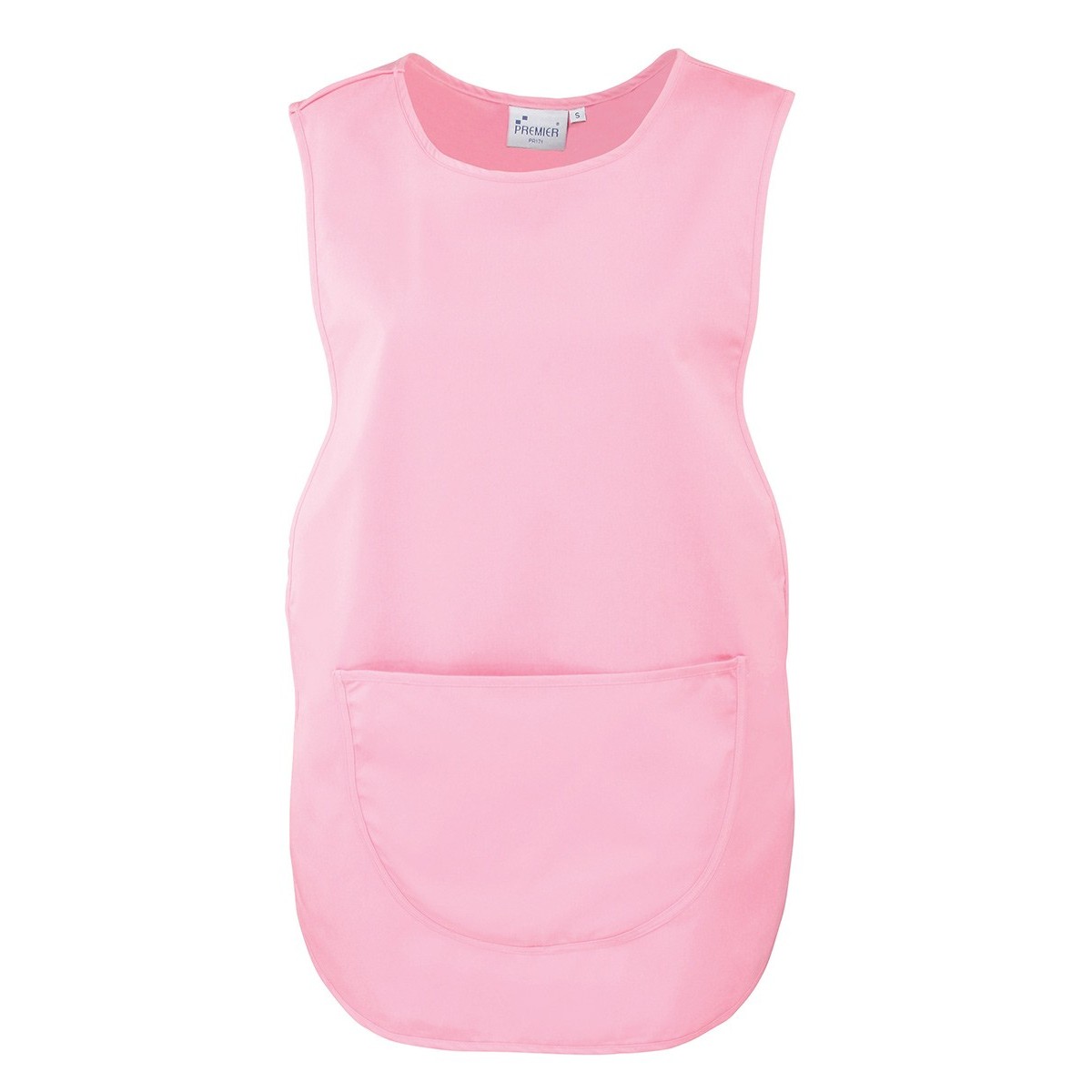65% poliestere, 35% cotone twill. Pettorina con capiente tasca frontale, linguette laterali con chiusura con bottone automatico. Lavabile a 60°C in lavatrice domestica, e 85°C in lavatrice industriale.