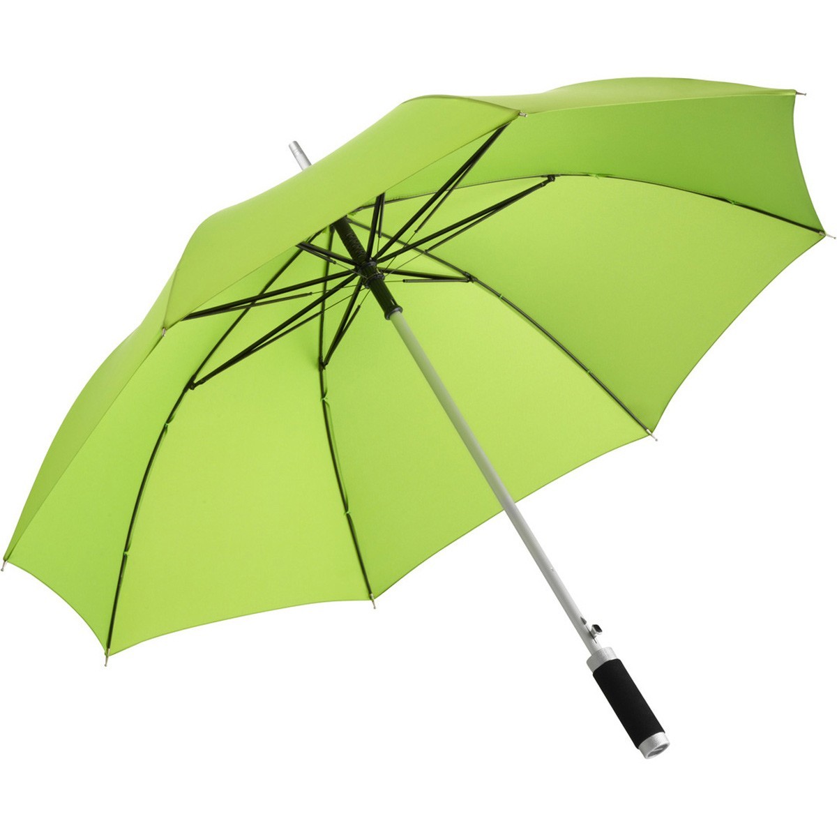 Bastone leggero in alluminio, confortevole funzione automatica per aprire rapidamente, stecche in fibra di vetro flessibili, pregiato sistema Windproof per la massima flessibilità del telaio in caso di forti raffiche di vento e fodera autopulente grazie all'originale rivestimento in tessuto DuPont Teflon, manico diritto in materiale morbido nero e possibilità di applicazione della pubblicità. Diametro: 105 cm, lunghezza da chiuso: 83 cm, 8 pannelli.