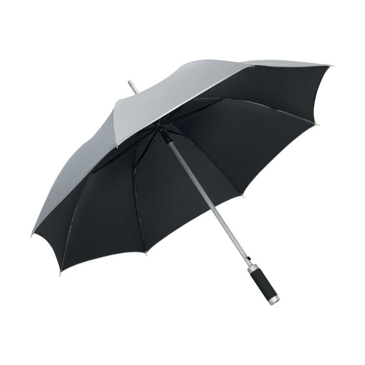 Fodera rivestita dall'esterno con fattore di protezione dalla luce UPF 50+, bastone in alluminio leggero ma stabile, confortevole funzione automatica per aprire rapidamente, stecche in fibra di vetro flessibili, pregiato sistema Windproof per la massima flessibilità del telaio in caso di forti raffiche di vento e fodera idrofuga e autopulente grazie all'originale rivestimento in tessuto DuPont Teflon, manico color alluminio con materiale morbido nero e possibilità di applicazione della pubblicità. Diametro: 105 cm, lunghezza da chiuso: 83 cm, 8 pannelli.