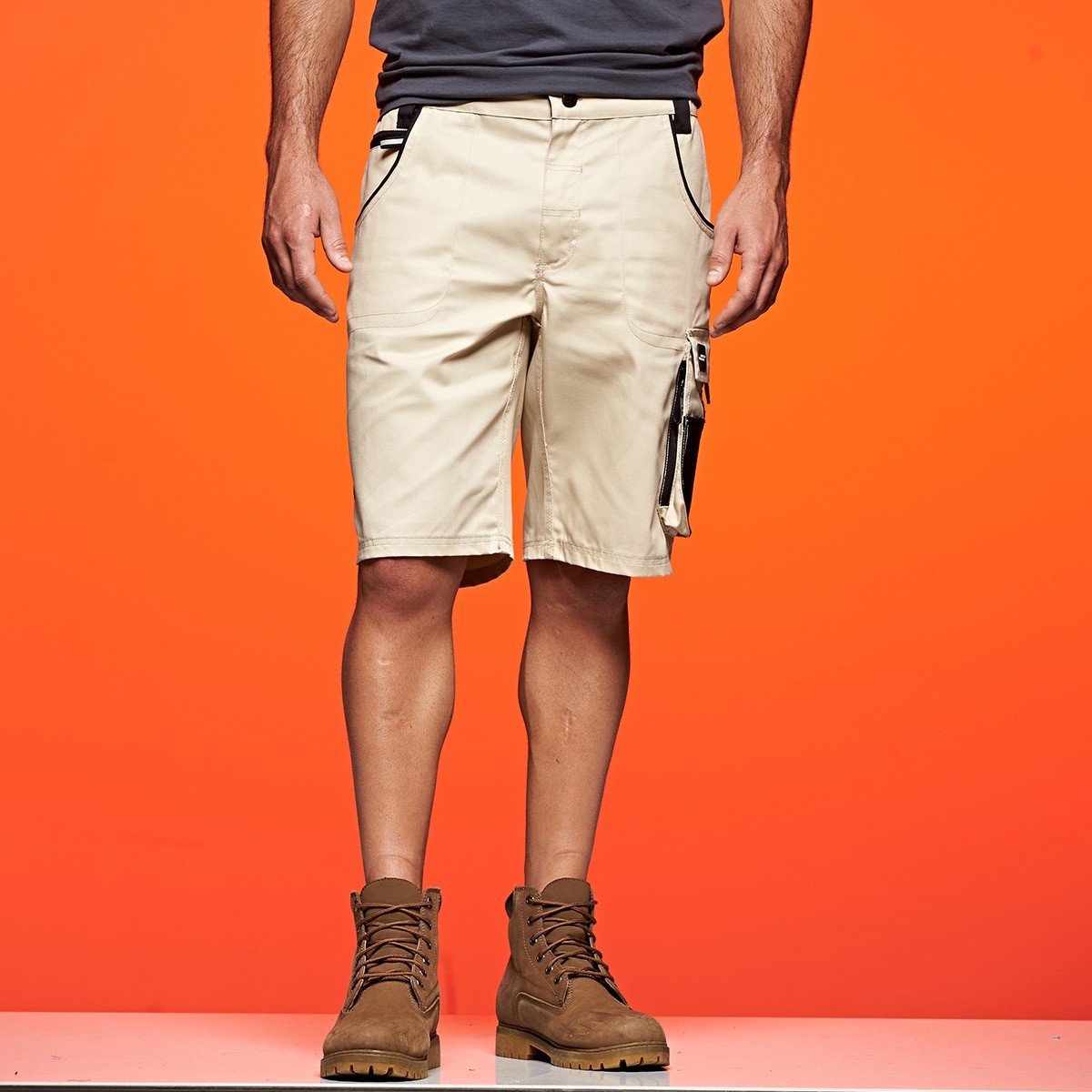65% poliestere, 35% cotone. Pantaloni con dettagli funzionali, tessuto misto robusto, tasche rinforzate con CORDURA, varie tasche multi-funzionali per attrezzi da lavoro.