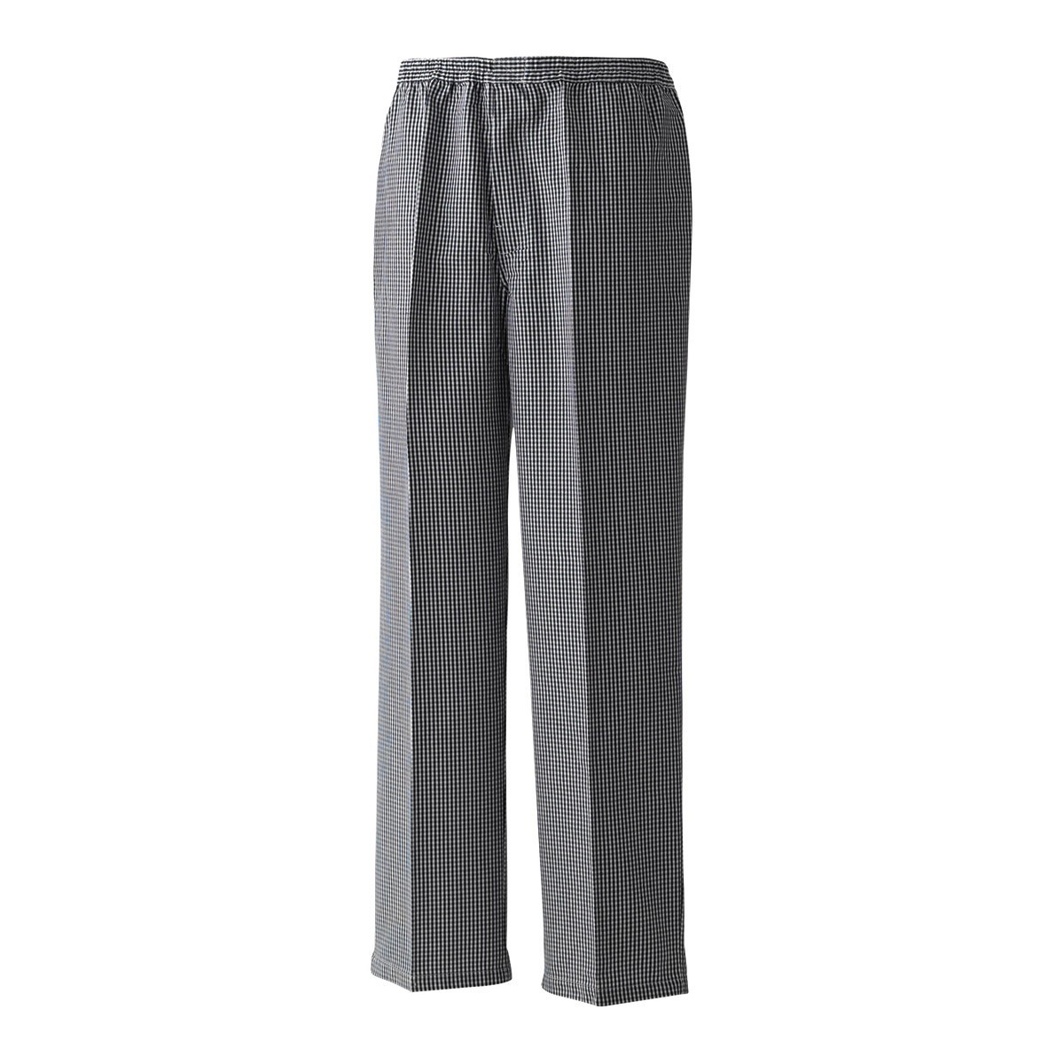 65% poliestere, 35% cotone. Pantaloni da chef in tessuto easy care, vita elasticizzata, taglie unisex, tasca posteriore