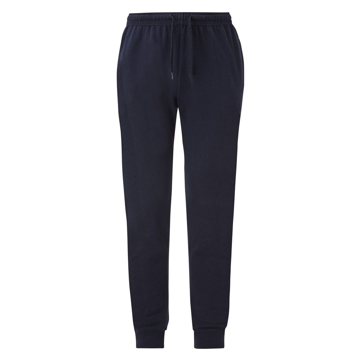 80% cotone, 20% poliestere. Pantaloni unisex, sgarzati, vita elasticizzata con cordoncino piatto a vista colorato, tasche laterali, polsini in costina di cotone / Lycra®, etichetta strappabile.