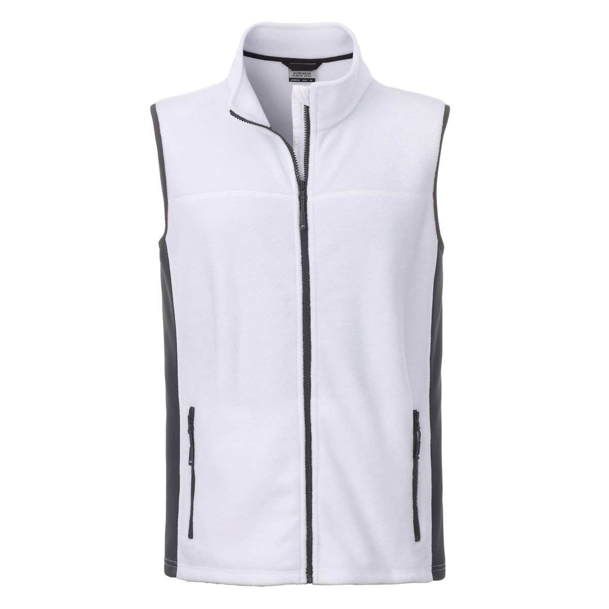 Tessuto esterno (280 g/m²): 100% poliestere. Easy care, anti pilling, in microfleece, inserti elastici laterali in soft shell di colore contrastante, cerniera nascosta e protezione per il mento, colletto alto, due tasche laterali con cerniera.