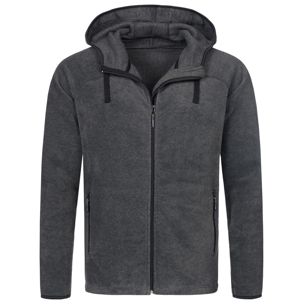 100% poliestere, pile anti-pilling, maniche raglan, struttura con cuciture laterali. cappuccio tipo sub con cordoncini p