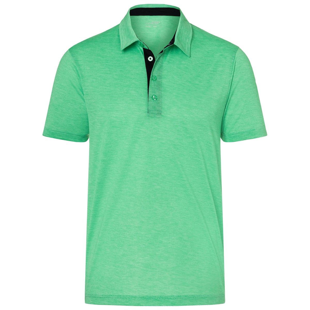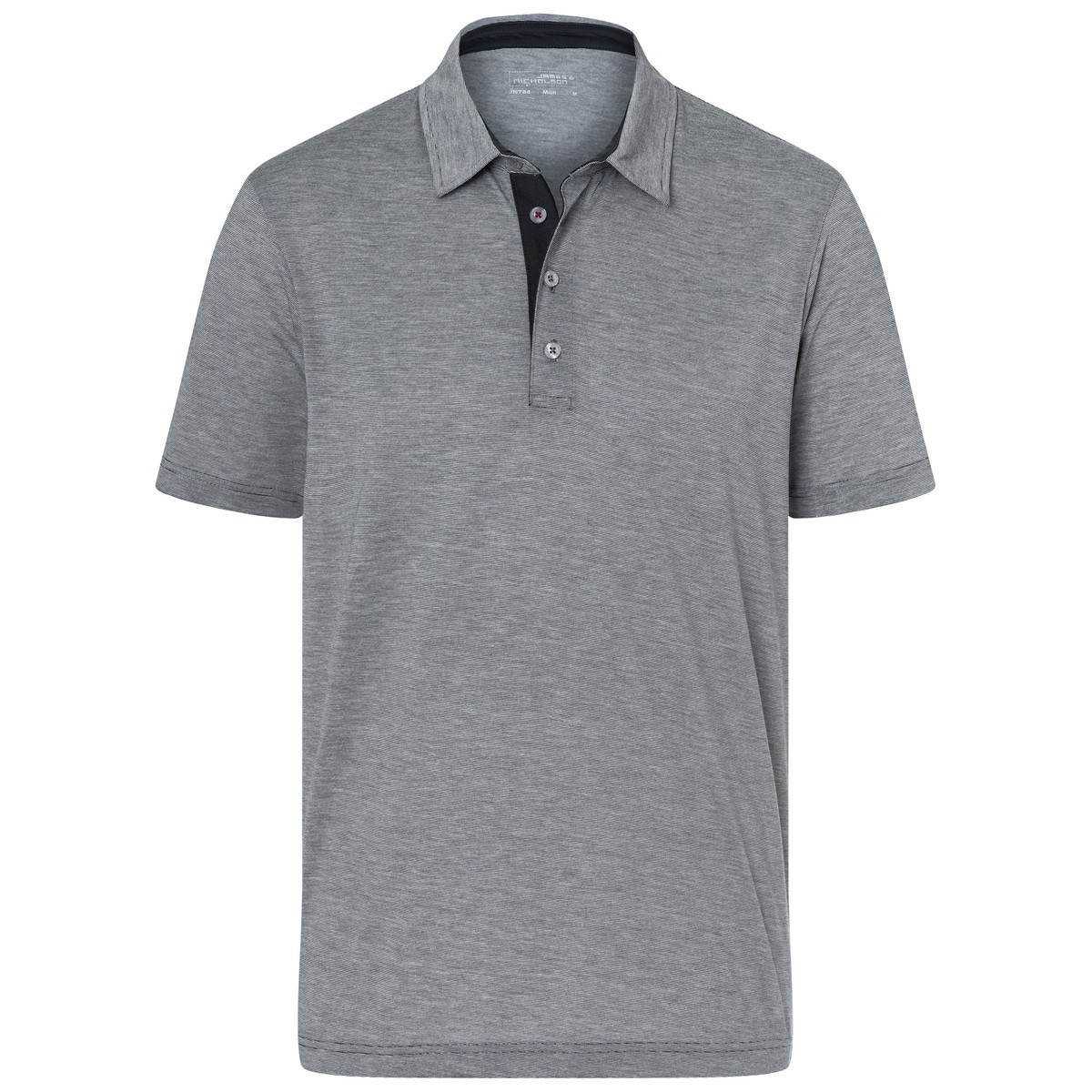 100% poliestere. Polo bicolore in jersey con motivo a righe, traspirante, con regolazione dell'umidità e ad asciugatura rapida. Parte Interna del colletto e bottoni di colore contrastante. Colletto alto, 4 bottoni.