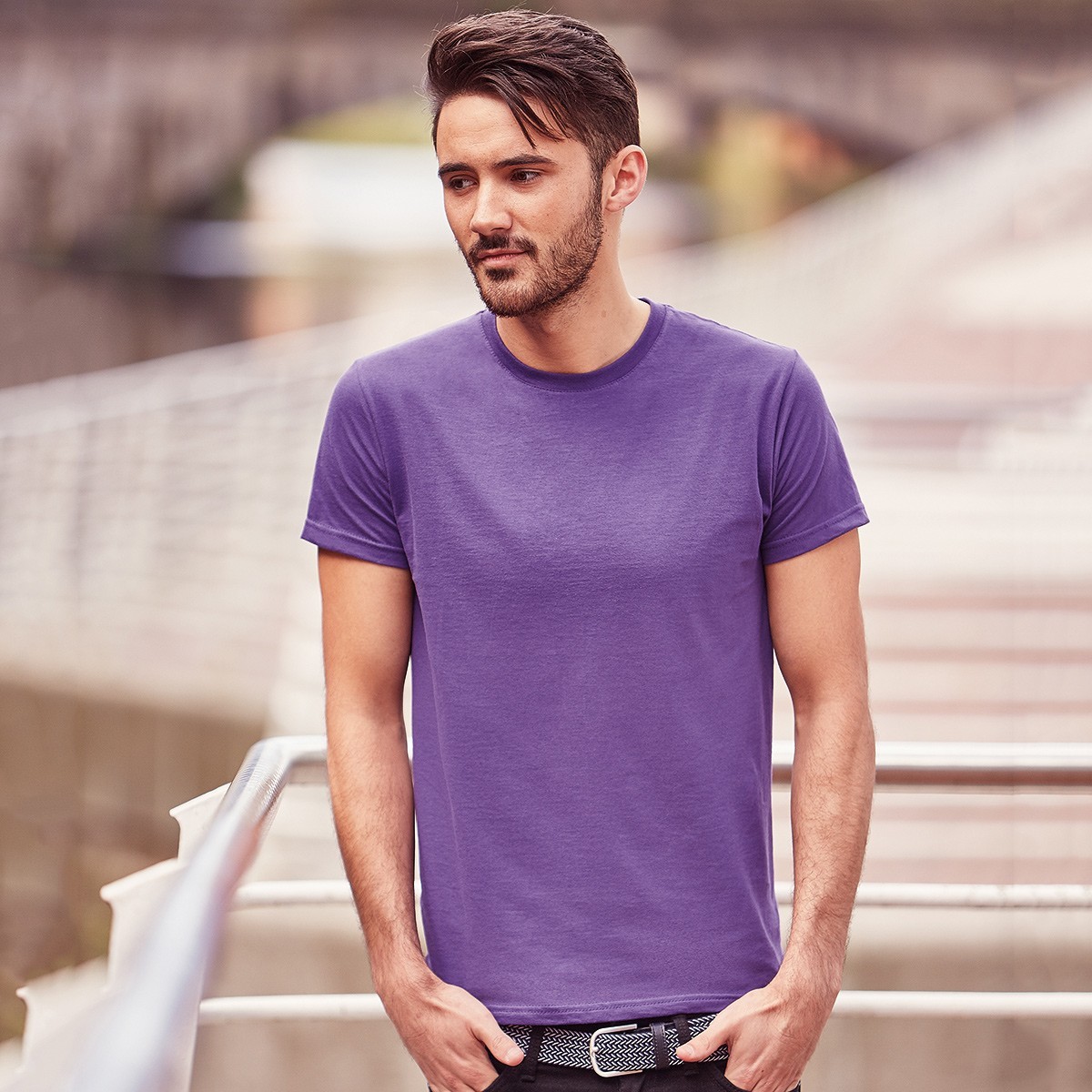 100% cotone ring-spun. T-shirt manica corta, girocollo in costina 1x1 con cucitura decorativa, nastro di rinforzo al col