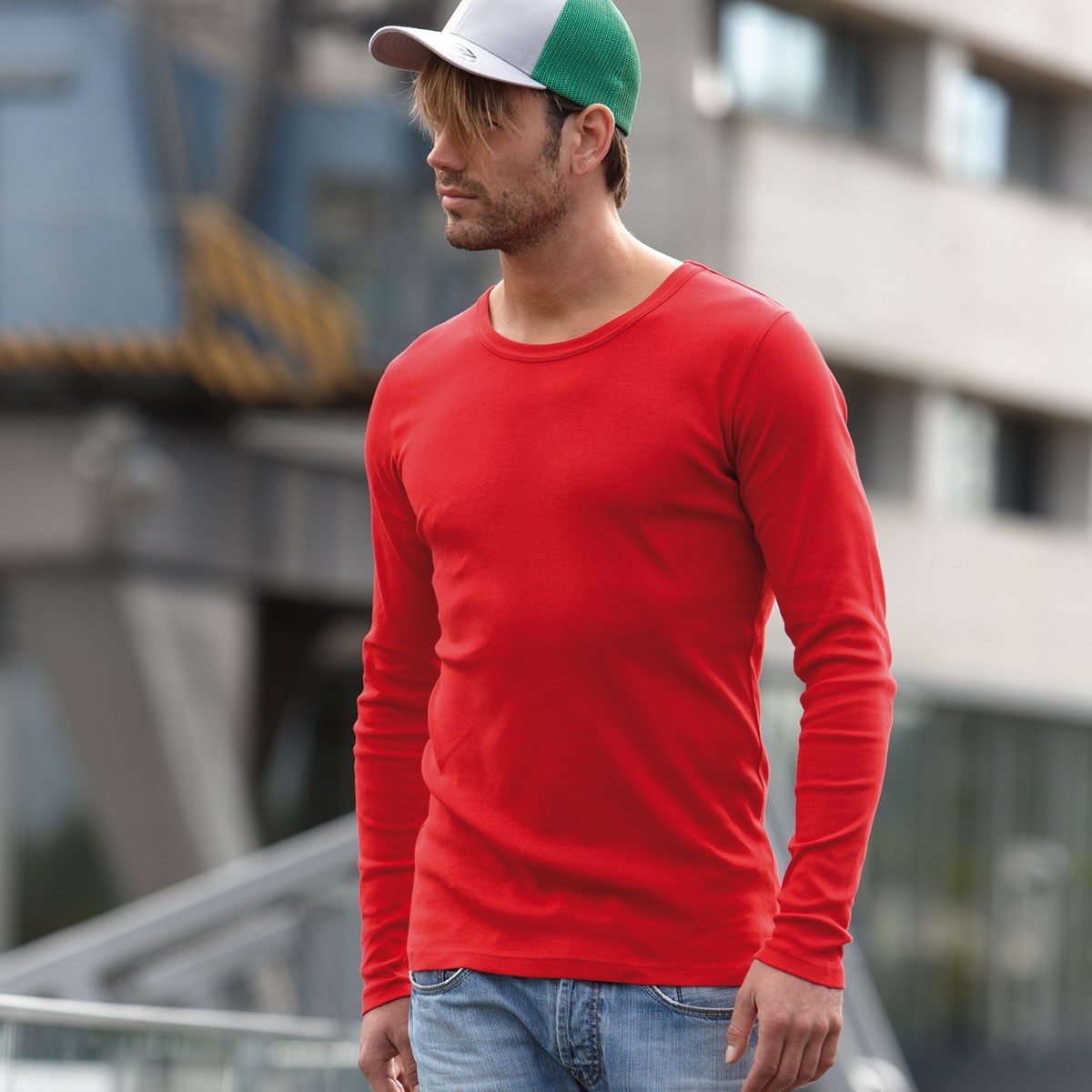 T-shirt di soffice cotone elastico manica lunga 1 x 1 , Scollo rotondo, Forma sottile, linea drita. Tessuto esterno (210
