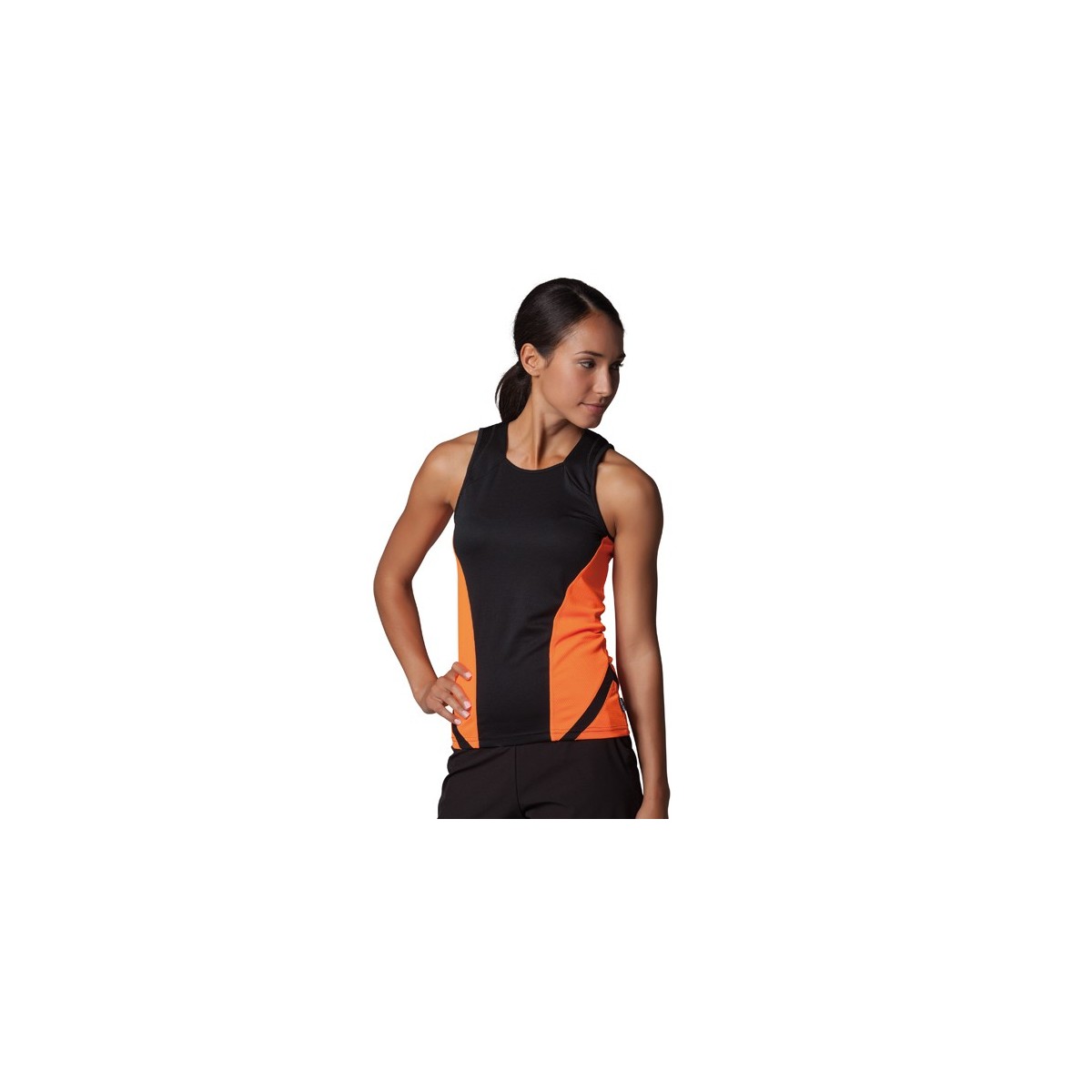 100% poliestere. Canotta girocollo straspirante, struttura con pannelli laterali di colore contrastante, leggermente sfi