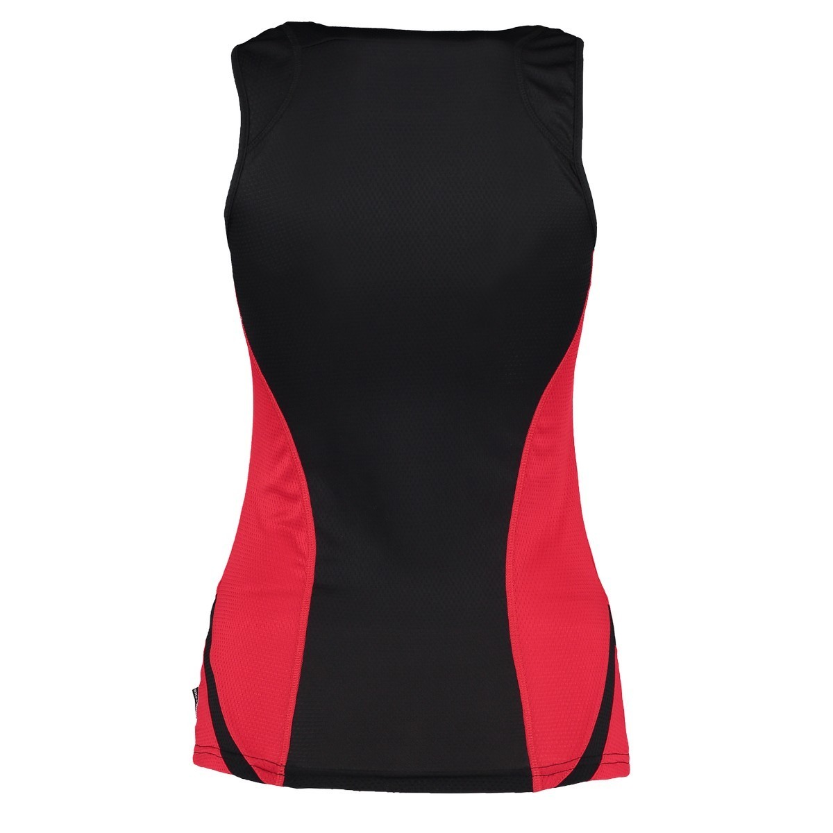 100% poliestere. Canotta girocollo straspirante, struttura con pannelli laterali di colore contrastante, leggermente sfiancata.