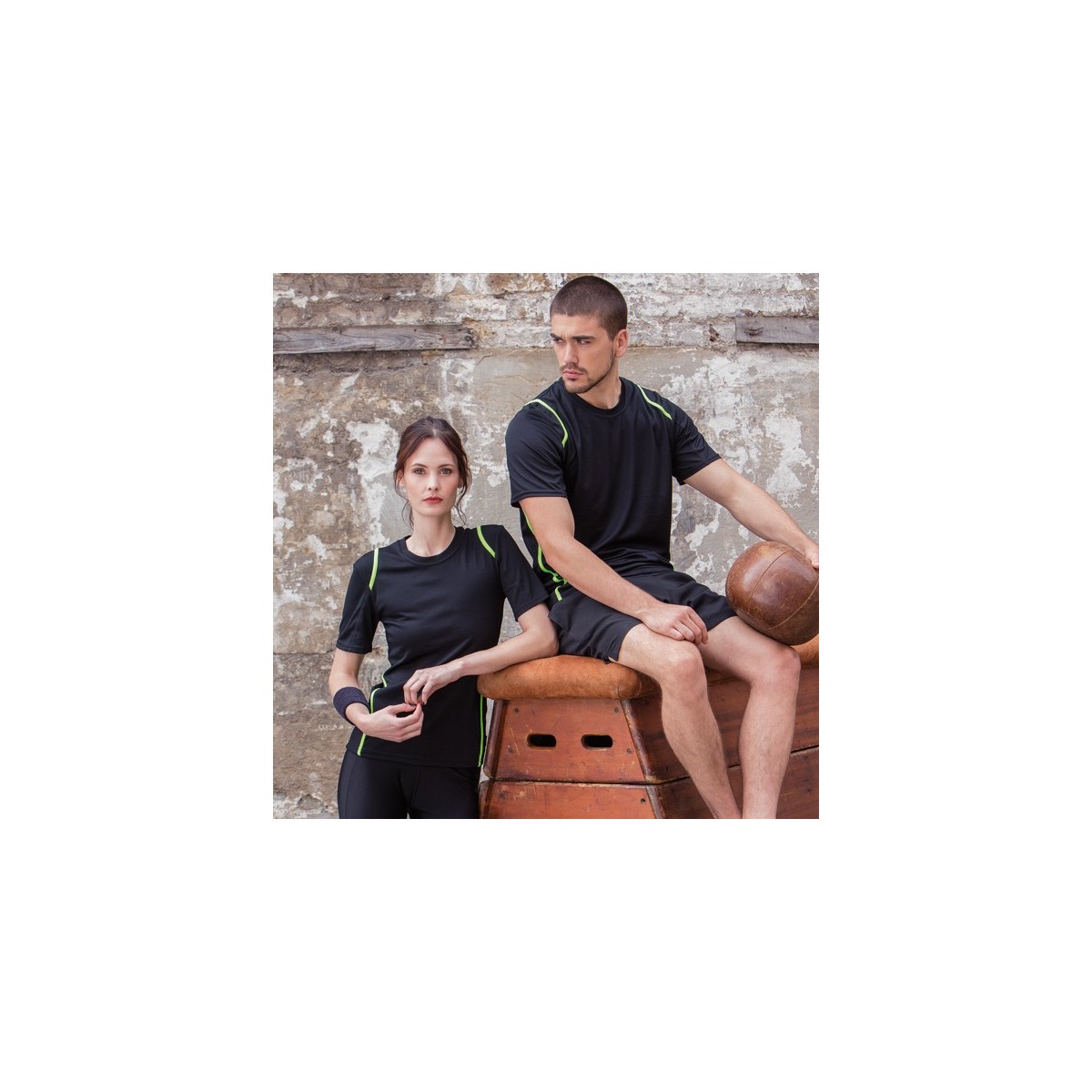 100% poliestere. T-shirt maniche set-in, traspirante, girocollo con fettuccia interna, sottili inserti in contrasto su spalle, schiena e fianchi, struttura con cuciture laterali.