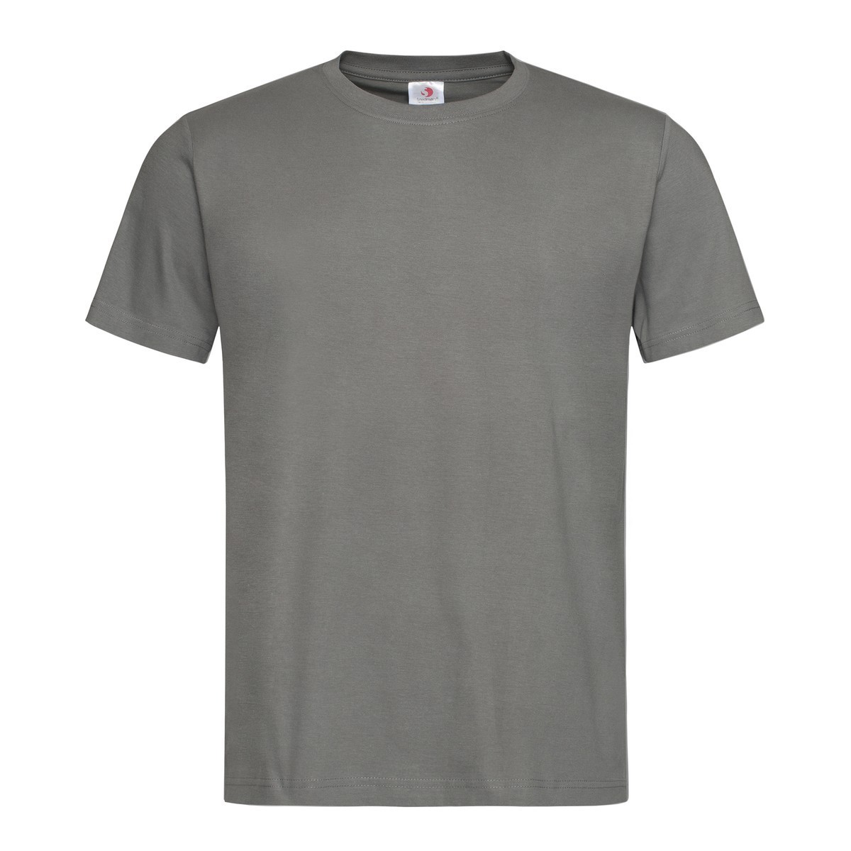 100% cotone ring-spun single jersey. T-shirt manica corta, girocollo in costina, nastro di rinforzo alle spalle, struttu