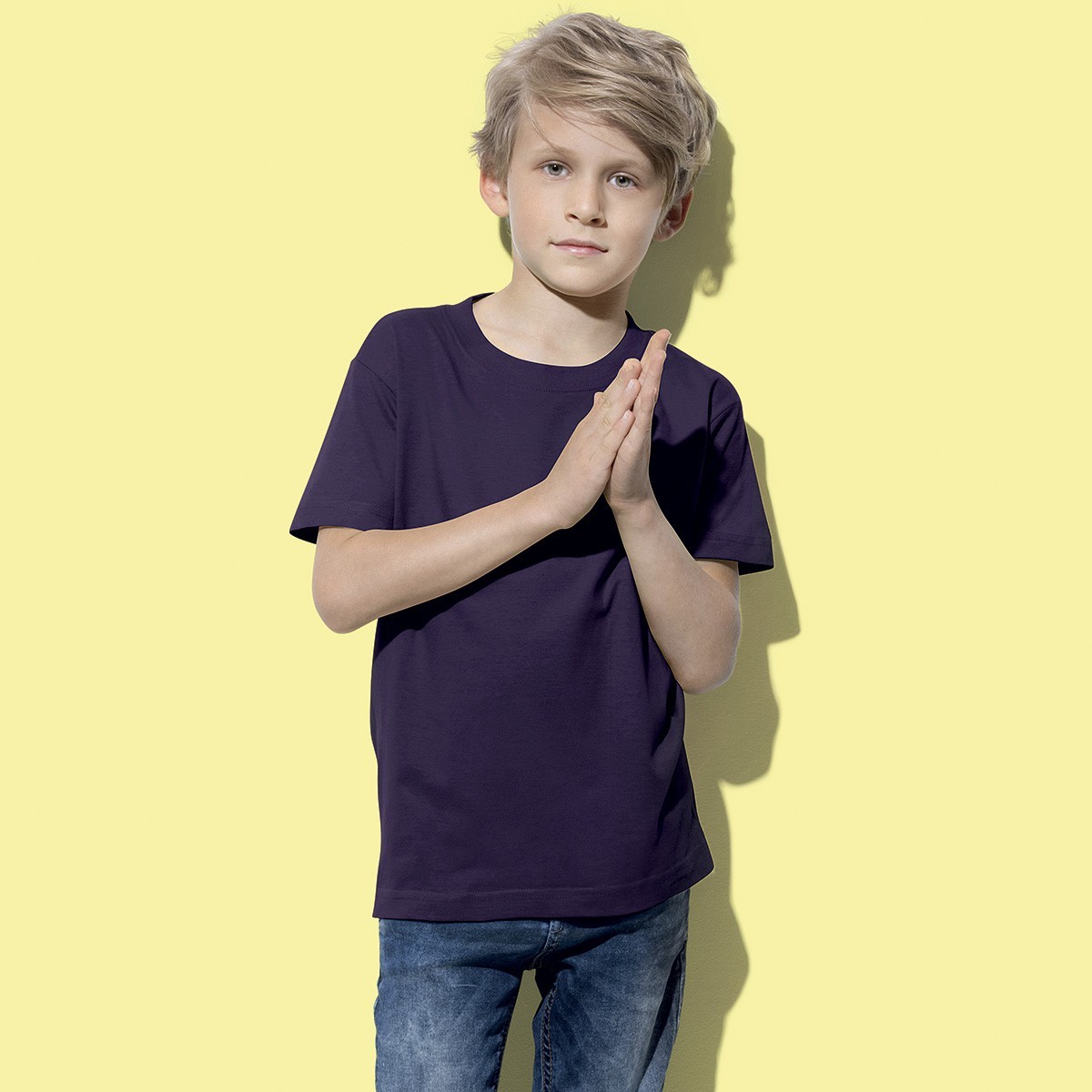 100% cotone ring-spun. T-shirt maniche corte set-in, cucitura a doppio ago su collo, maniche e vita, nastro di rinforzo alle spalle, struttura con busto tubolare. GYH: 85% cot. 15% vis.
