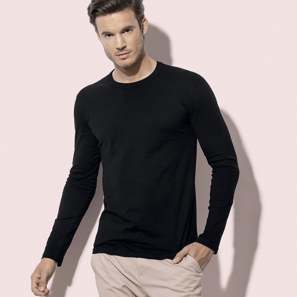 100% cotone ring spun, single jersey. T-shirt manica lunga set-in, girocollo con orlo a costine, etichetta strappabile, struttura con cuciture laterali, lavabile a 40°C.