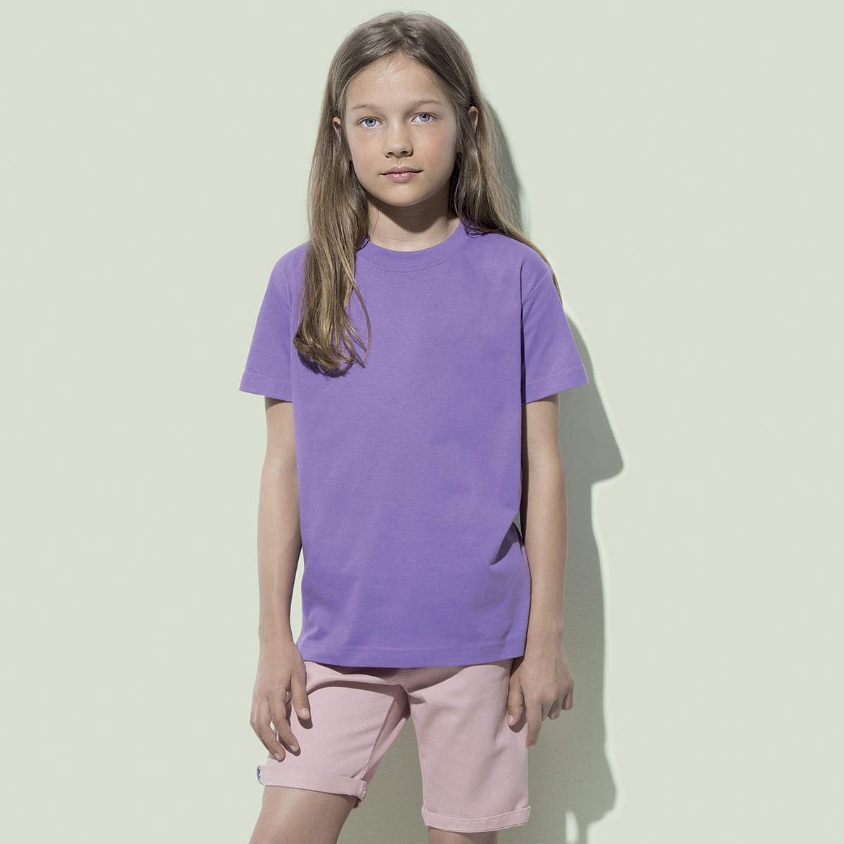 100% cotone organico certificato OCS, ring-spun, single jersey. T-shirt maniche corte set-in, nastro di rinforzo alle sp