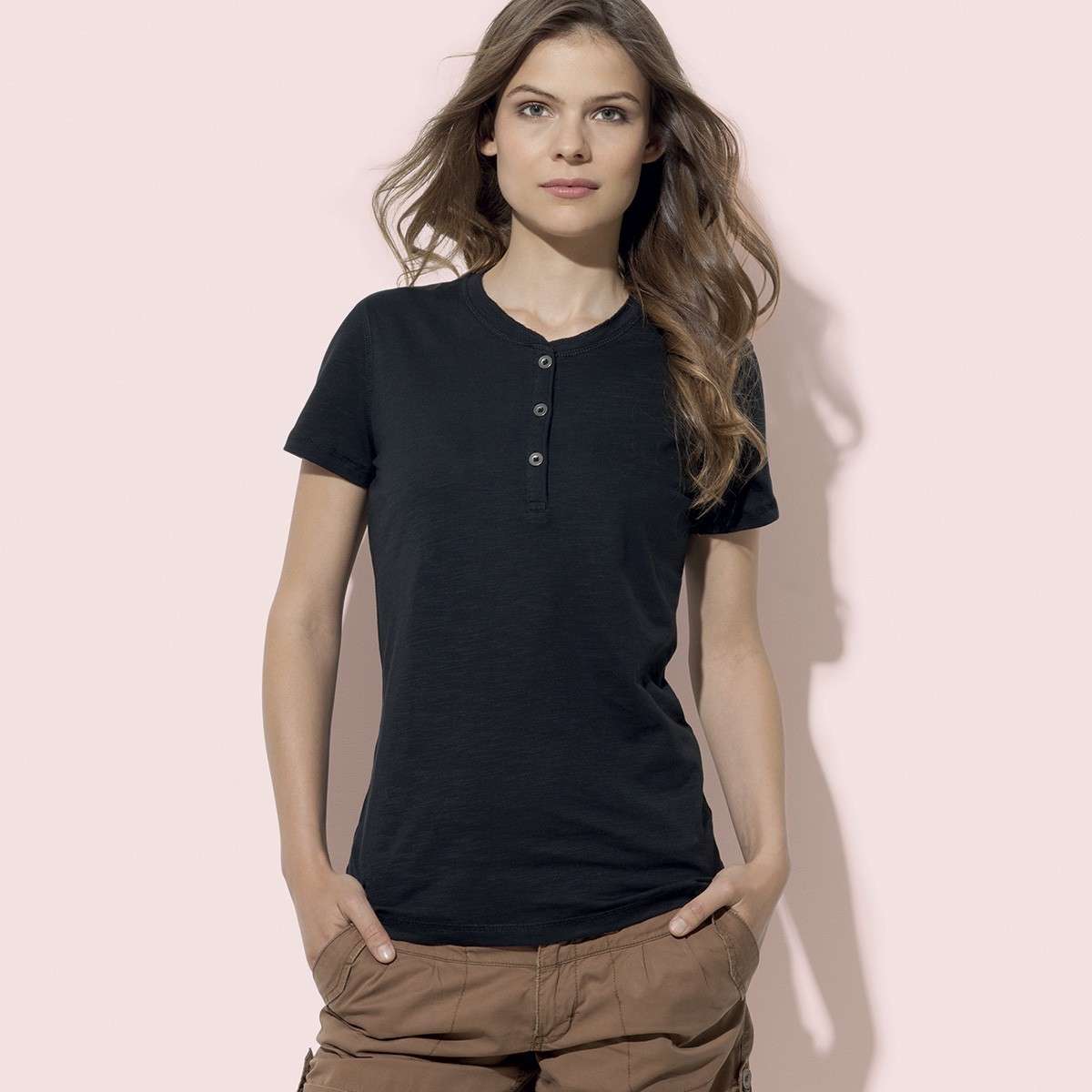 T-Shirt Sharon Henley T-shirt colore black opal taglia S