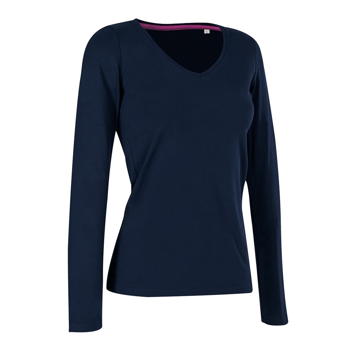 95% cotone ring spun, 5% elastane, single jersey. T-shirt manica lunga set-in, scollo profondo a V. Etichetta strappabil
